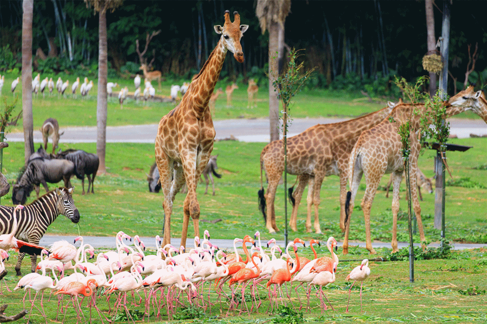 在广州长隆野生动物世界可以看到两万多只珍稀野生动物跟随特色小火车一路前行深入感受野趣