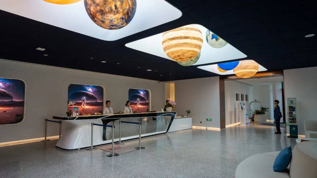 酒店各处,无一不与航空息息相关!从酒店大门口的贝尔直升机,到大堂的行星天花板艺术装置,宛若太空舱门的窗户,再到深受孩子们喜欢的童玩中心…都是宇宙飞船的内舱设计…沉浸感十足!