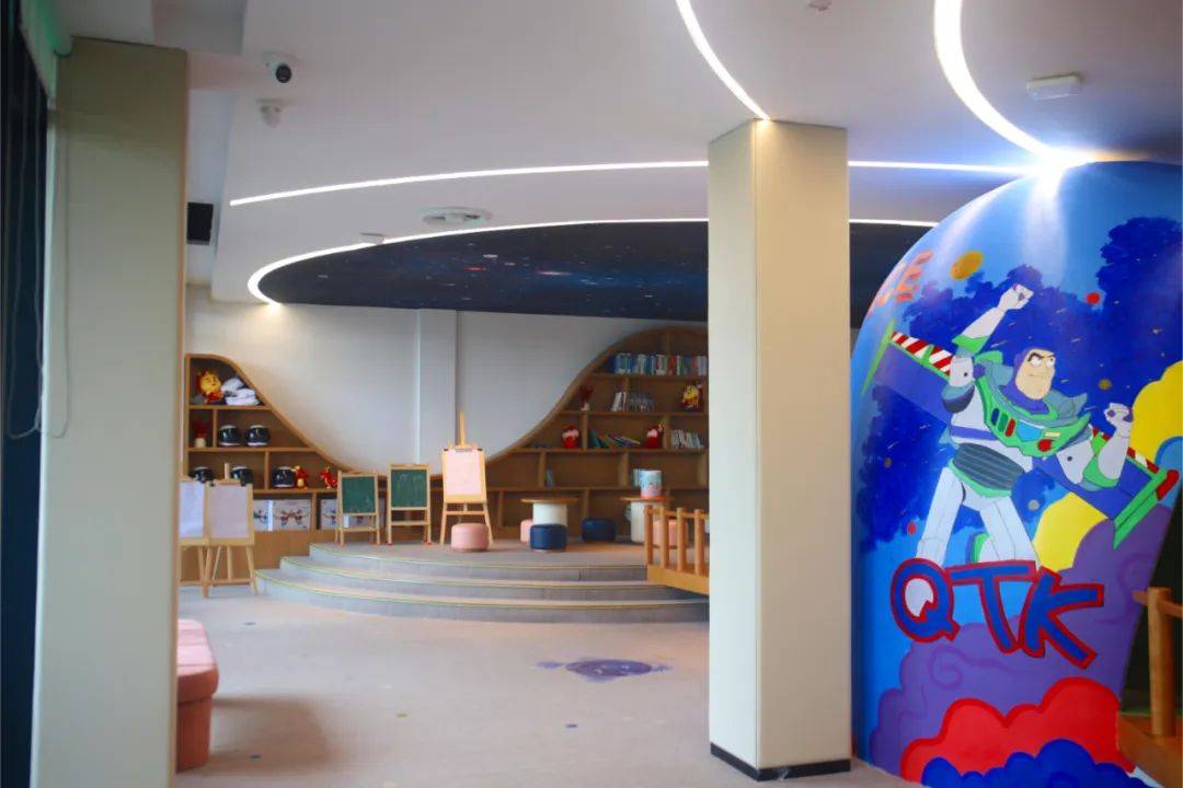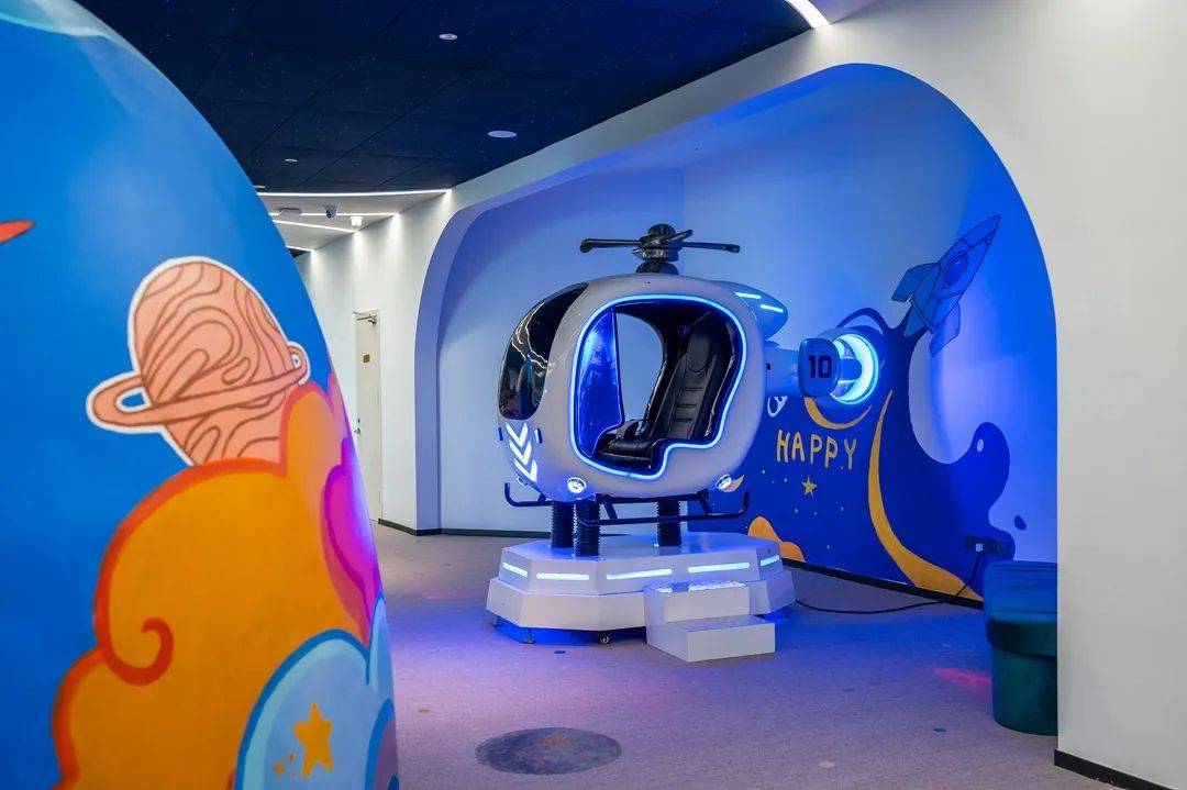 带娃的家庭可以去童玩中心,内部设计为航空飞船主题,不管是颜色还是空间,都充满趣味。