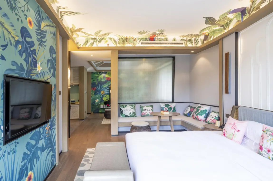 房间以68㎡的套房起底,接着更有叠墅、叠排等多样房型可选,其中,单单是套房,还有不同主题和分类,如:热带雨林套房、山景套房、城堡奇遇套房、家庭套房(双卧)等,可以满足多样人群选择。