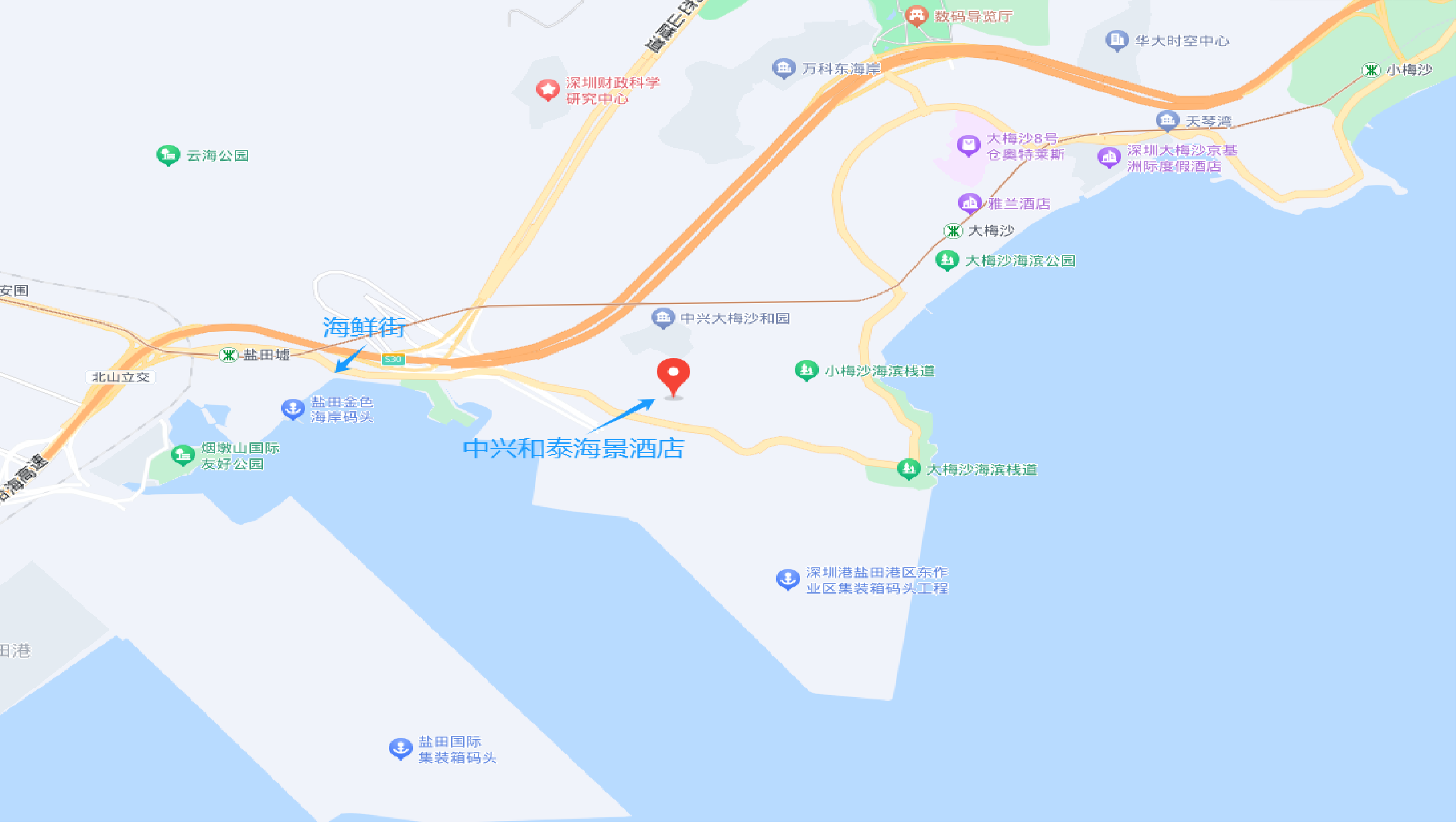 酒店地址:深圳市盐田区盐梅路268号(中兴发展公交站台旁)