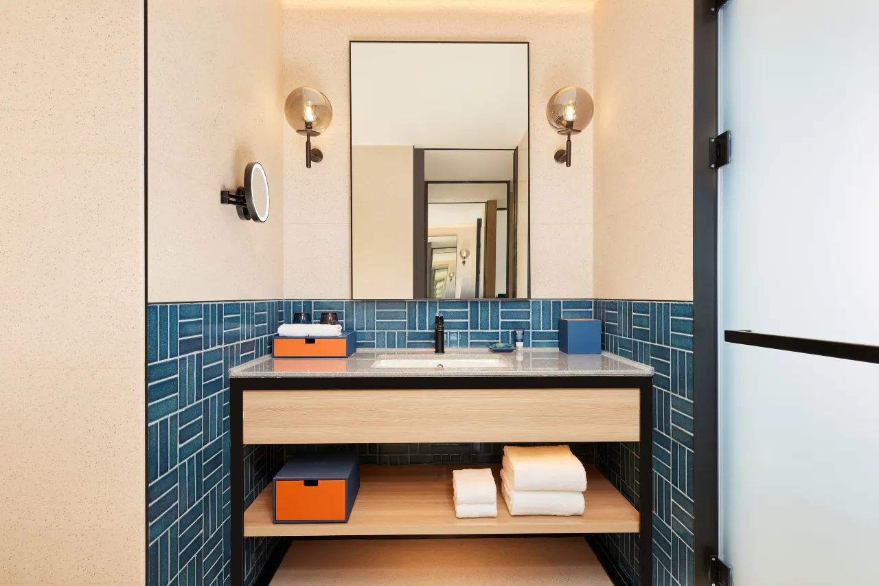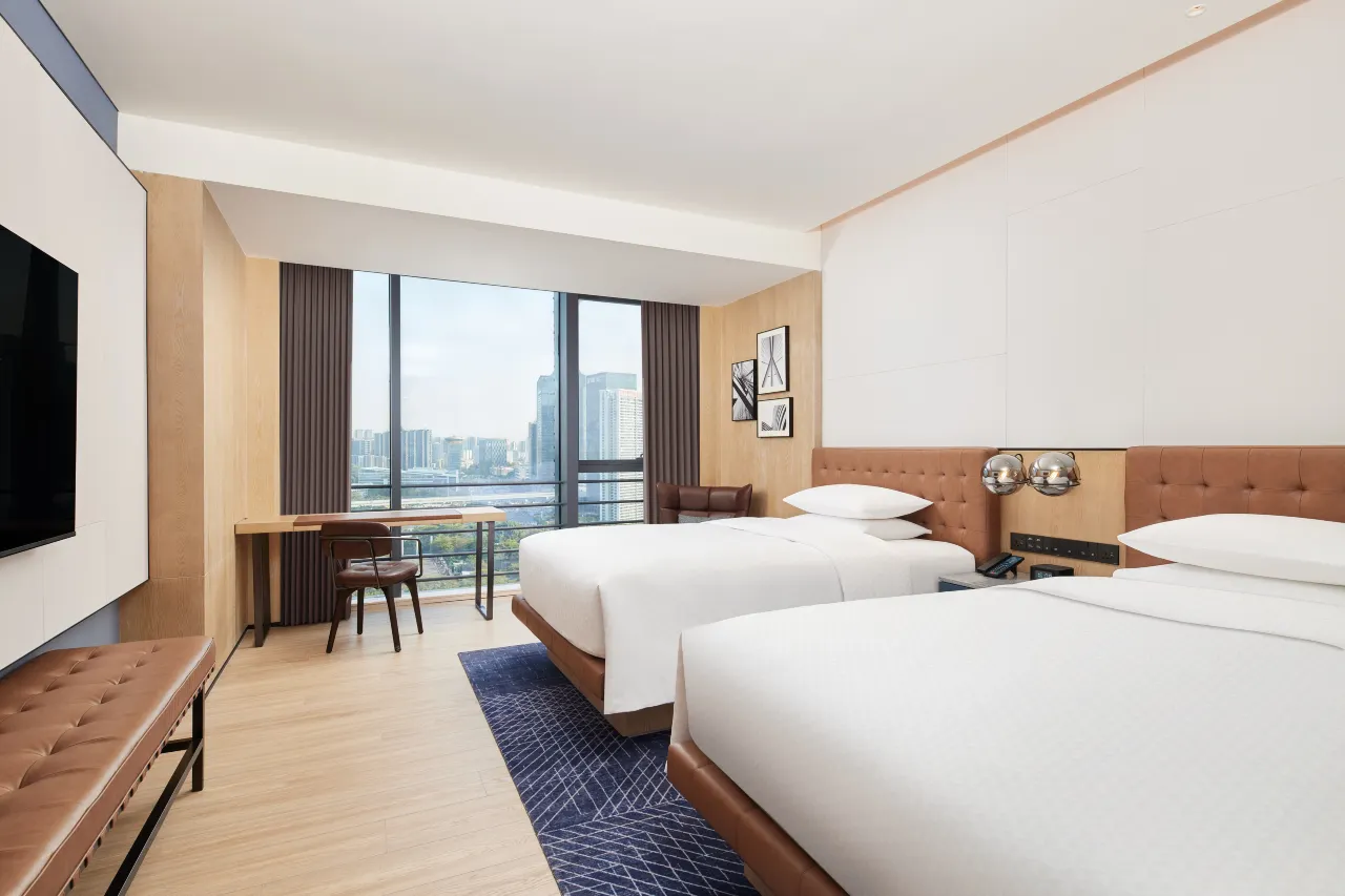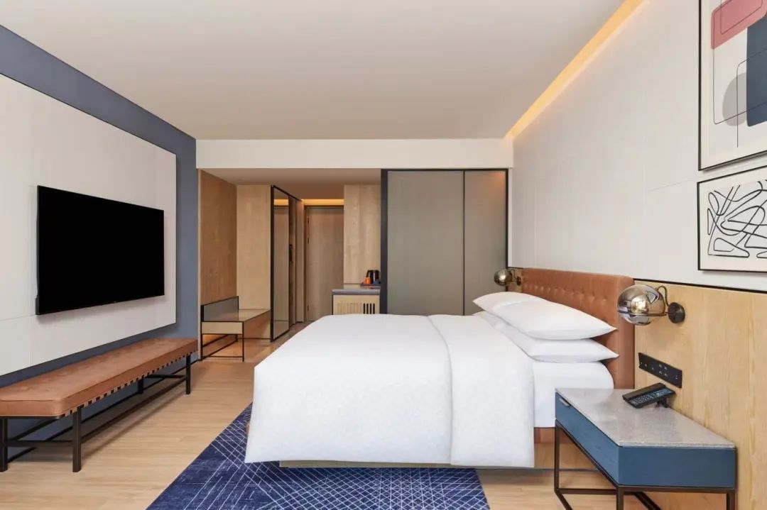 酒店拥有216间现代化客房和套房,均配备舒适床品、步入式淋浴间、65寸高清电视、符合人体工程学设计的沙发、灵活便捷的办公区,以及高速无线网络。