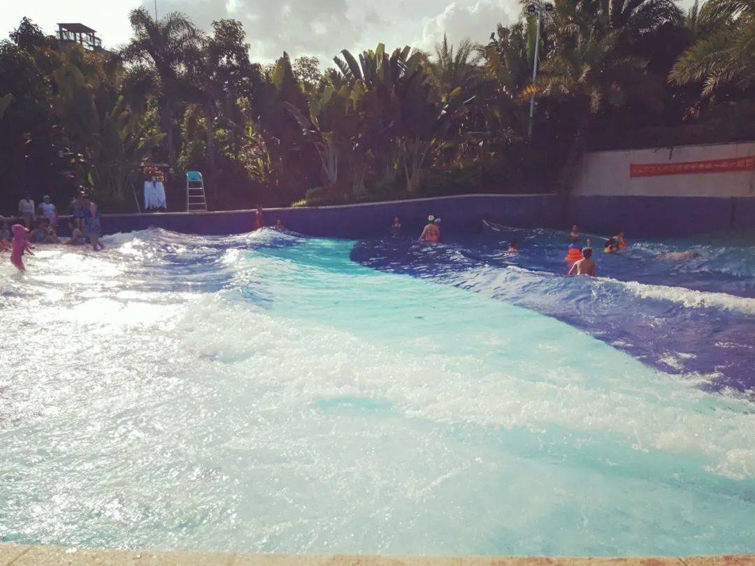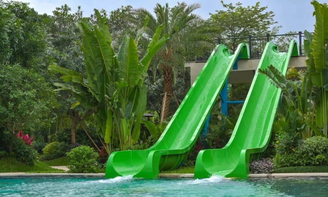 泳池内另配备有造浪池、水上滑梯、儿童戏水池