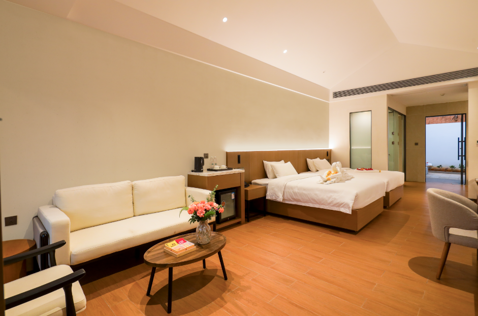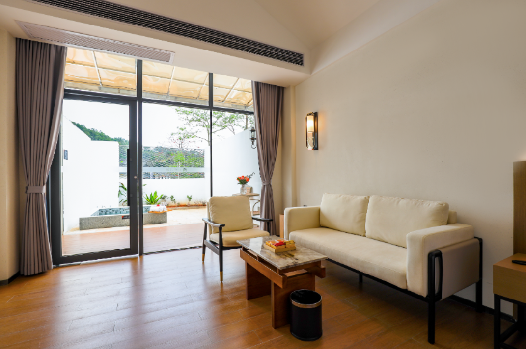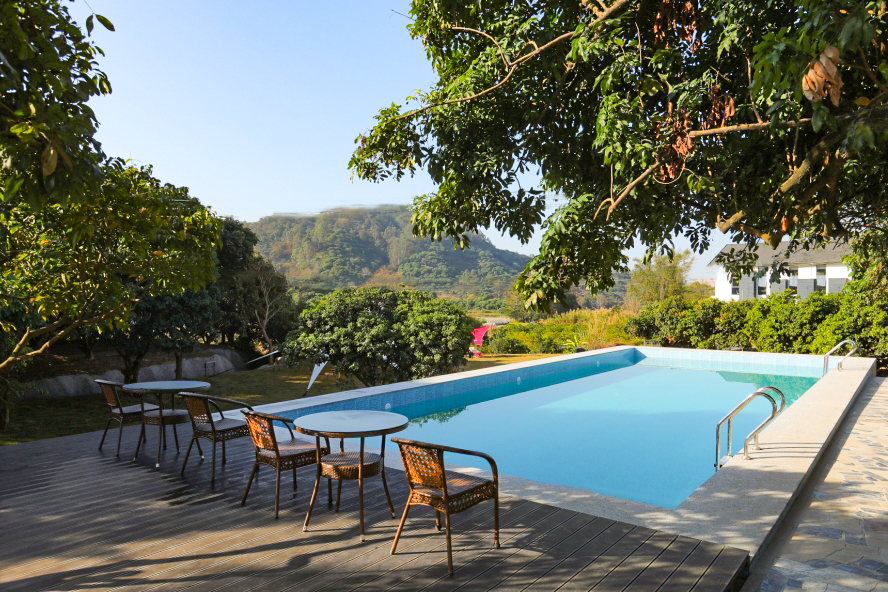 公共空间宽敞,内设月涧轩餐厅、仓储式团建基地、多功能会议室、开放式观景台阳光大草坪、魔镜健身房、户外游泳池,集休闲度假、团建聚会、亲子研学为一体