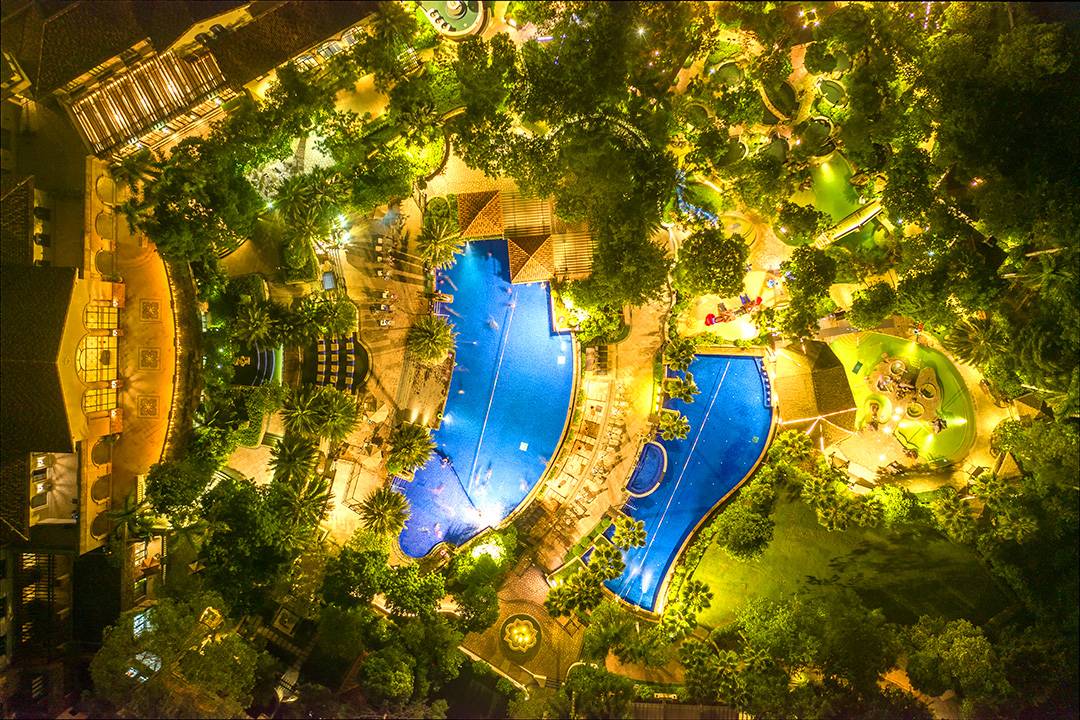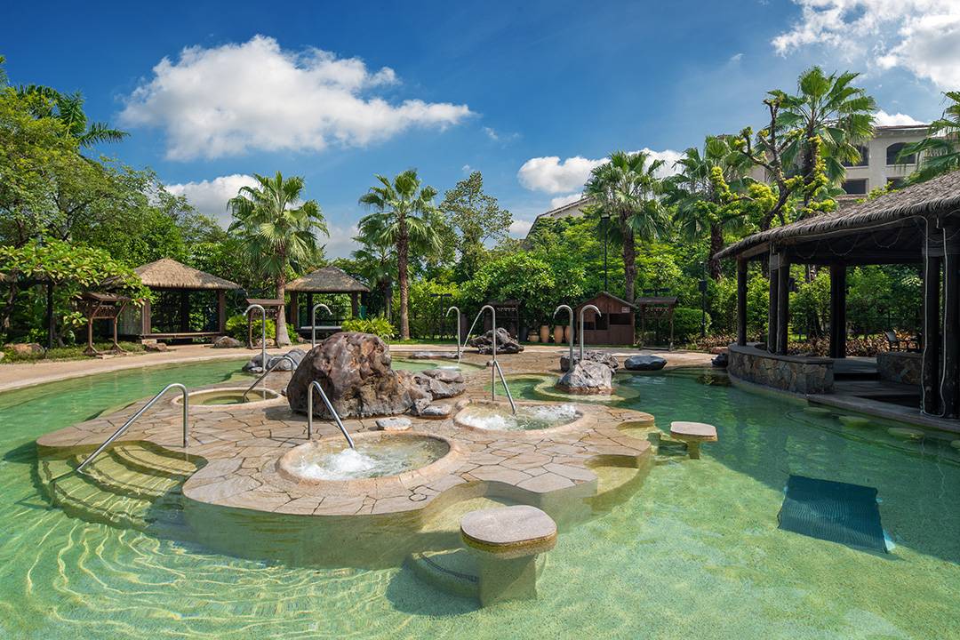 酒店拥有2万平方米的自然园林,30多个温泉泡池,及无边际泳池。温泉水富含20多种人体必须得矿物微量元素,健体疗身,同时更能使皮肤保持光泽、白皙、细嫩。