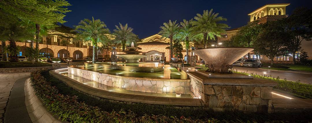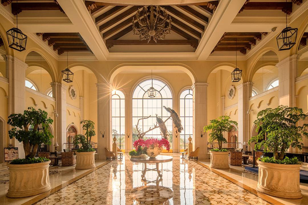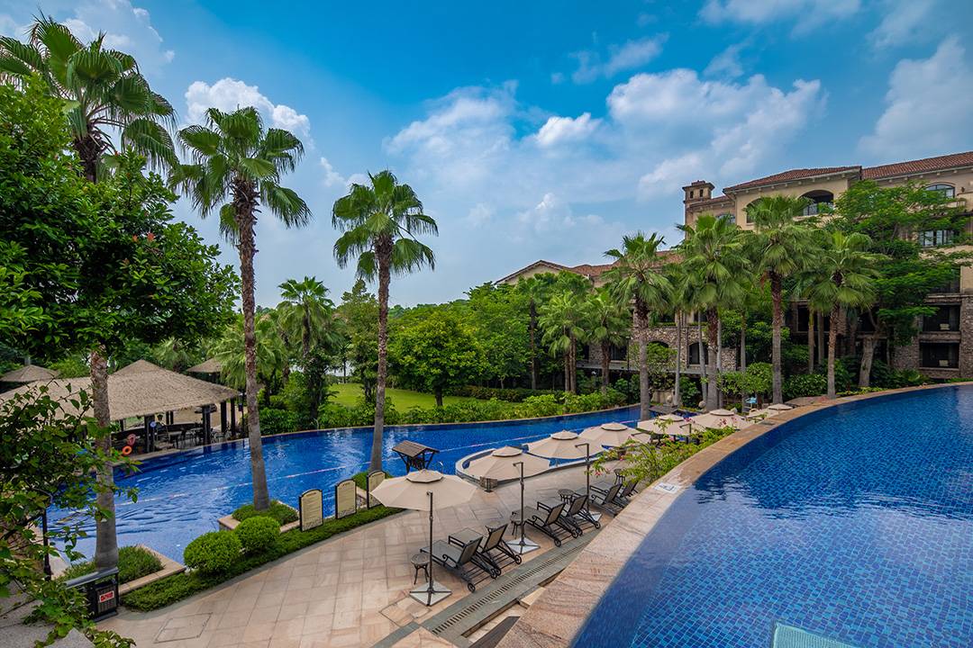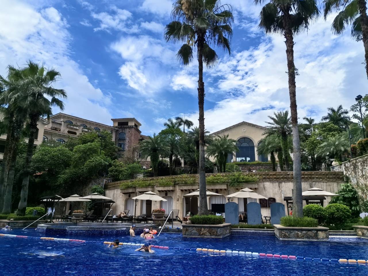 酒店按白金五星标准建造的,以“意大利山城”为主题打造,依山势而建,层叠错落有致,环360风景,南加州建筑风格尽显异域风情魅力
