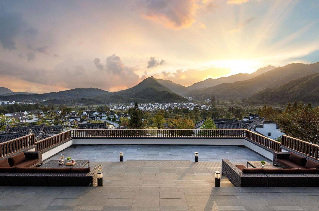 日落时,黄山悦榕庄的日落仪式便在此开启,期间会免费提供酒店出品的甜点和饮料,将度假仪式感拉满!