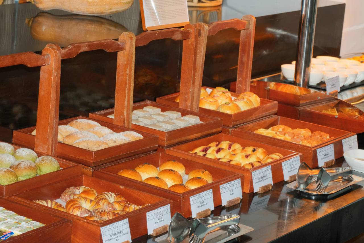 早餐在明月全日餐厅享用,中西式皆有,丰富又精致,徽州特色早餐温泉蛋,毛豆腐,酒酿饼等;还有徽州特色美食点心可以品。饮品不仅有果汁牛奶,还有精致气泡酒。
