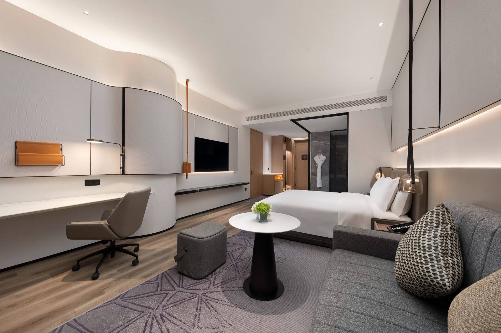 采用新一代“摩登商旅”设计,将现代美学与“水韵梅香”东方格调相汇,精妙布局休息区、工作区和休闲区,营造私密与开放兼具的住享氛围,完善的设施亦让您“轻装简行”。
