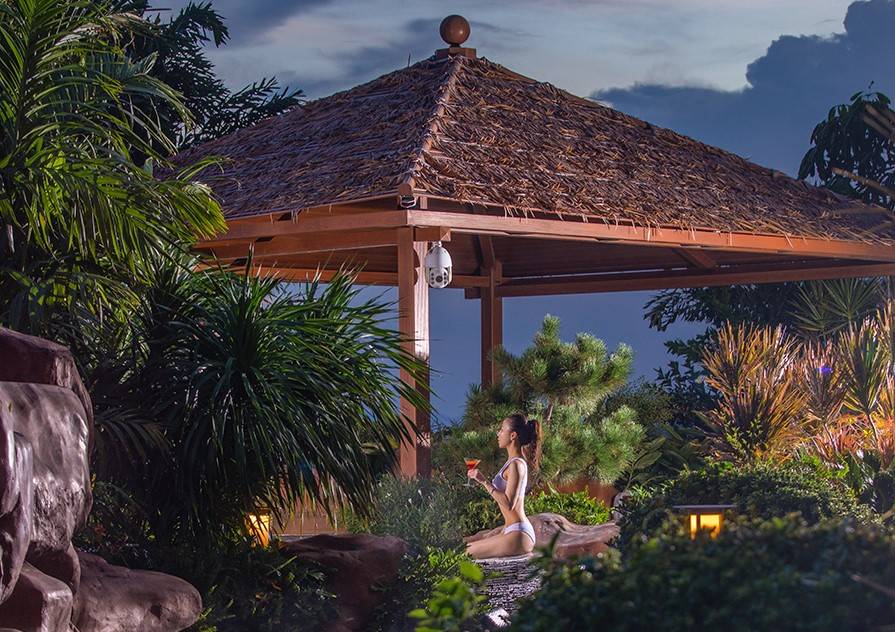 酒店的空中泡池是依巴厘岛的装修风格建立而成