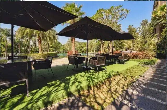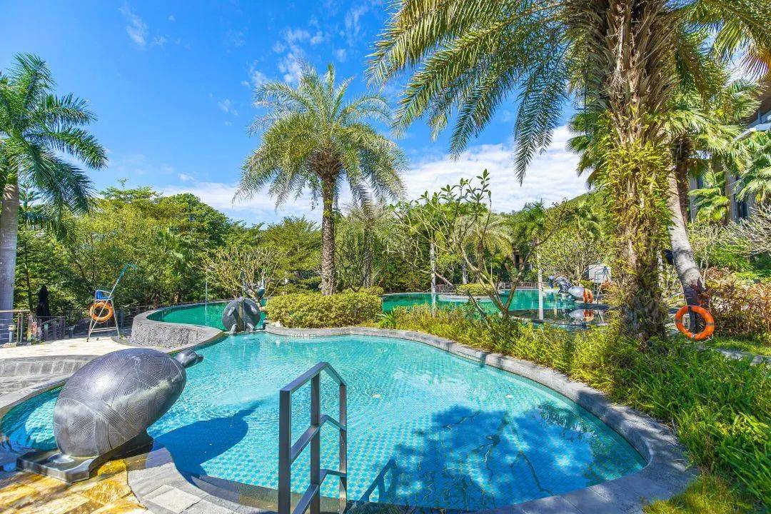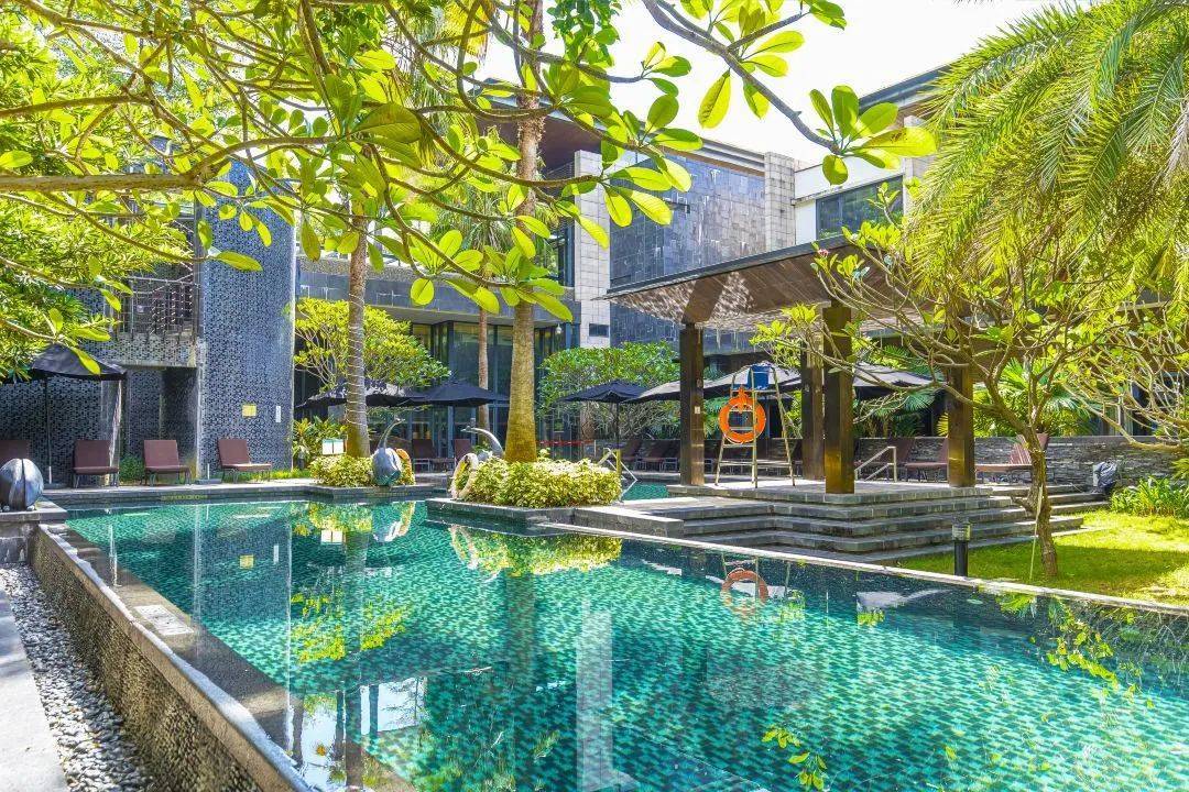 整个泳池周围满满的东南亚风的绿植,