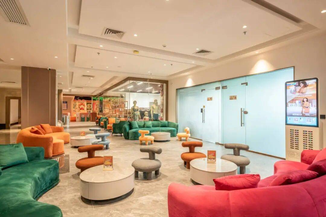 还有动感⼗⾜的投屏投篮,七彩滑梯、趣味攀岩、