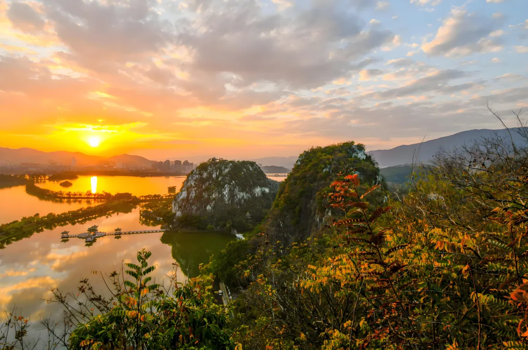 七星岩风景区位于广东省肇庆市端州区,是国家5A级旅游景区,以喀斯特地貌和山水景观闻名,被誉为“岭南第一奇观”。