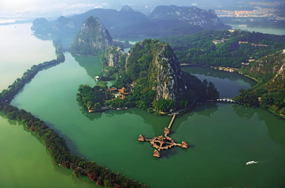 七星岩风景区位于广东省肇庆市端州区,是国家5A级旅游景区,以喀斯特地貌和山水景观闻名,被誉为“岭南第一奇观”。