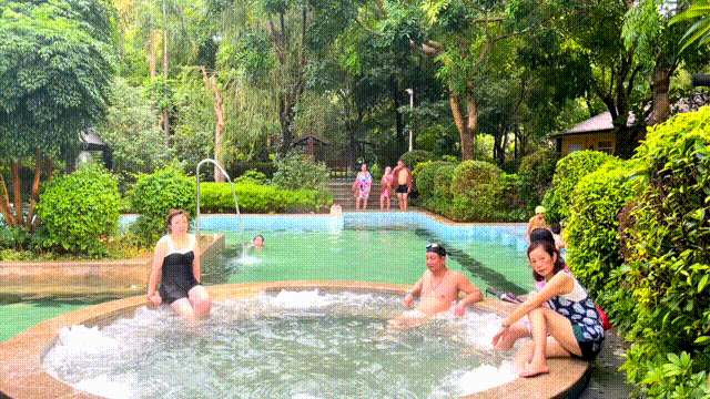 【泡】2大1小无限次露天养生温泉、山泉水露天缤纷嬉水泳池