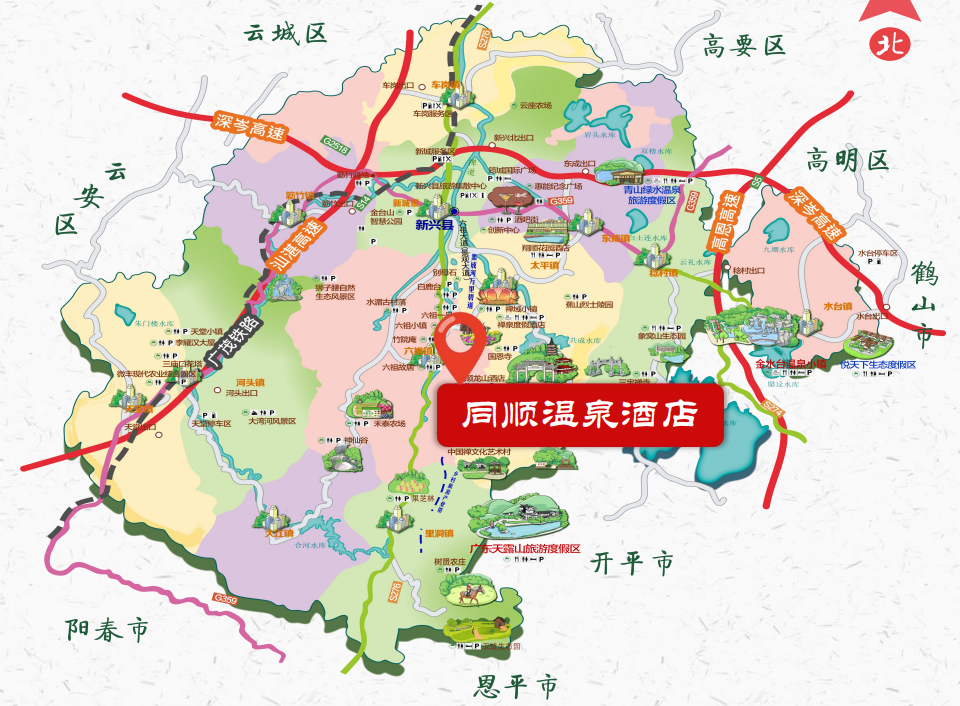 酒店坐落于云浮市新兴县六祖故里旅游度假区