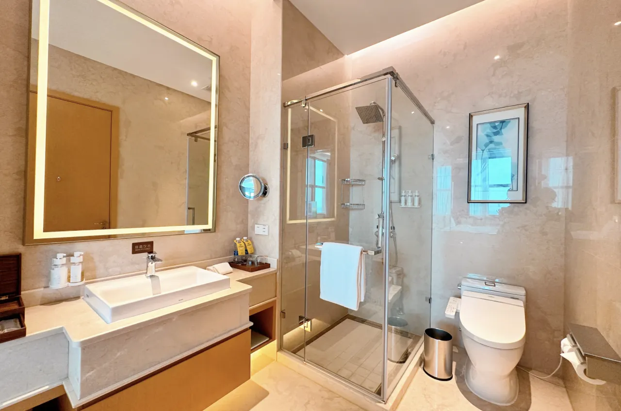 各项配置体现了洲际集团国际贴心服务,卫生间干湿分离,精细化布局,可淋浴可泡澡。