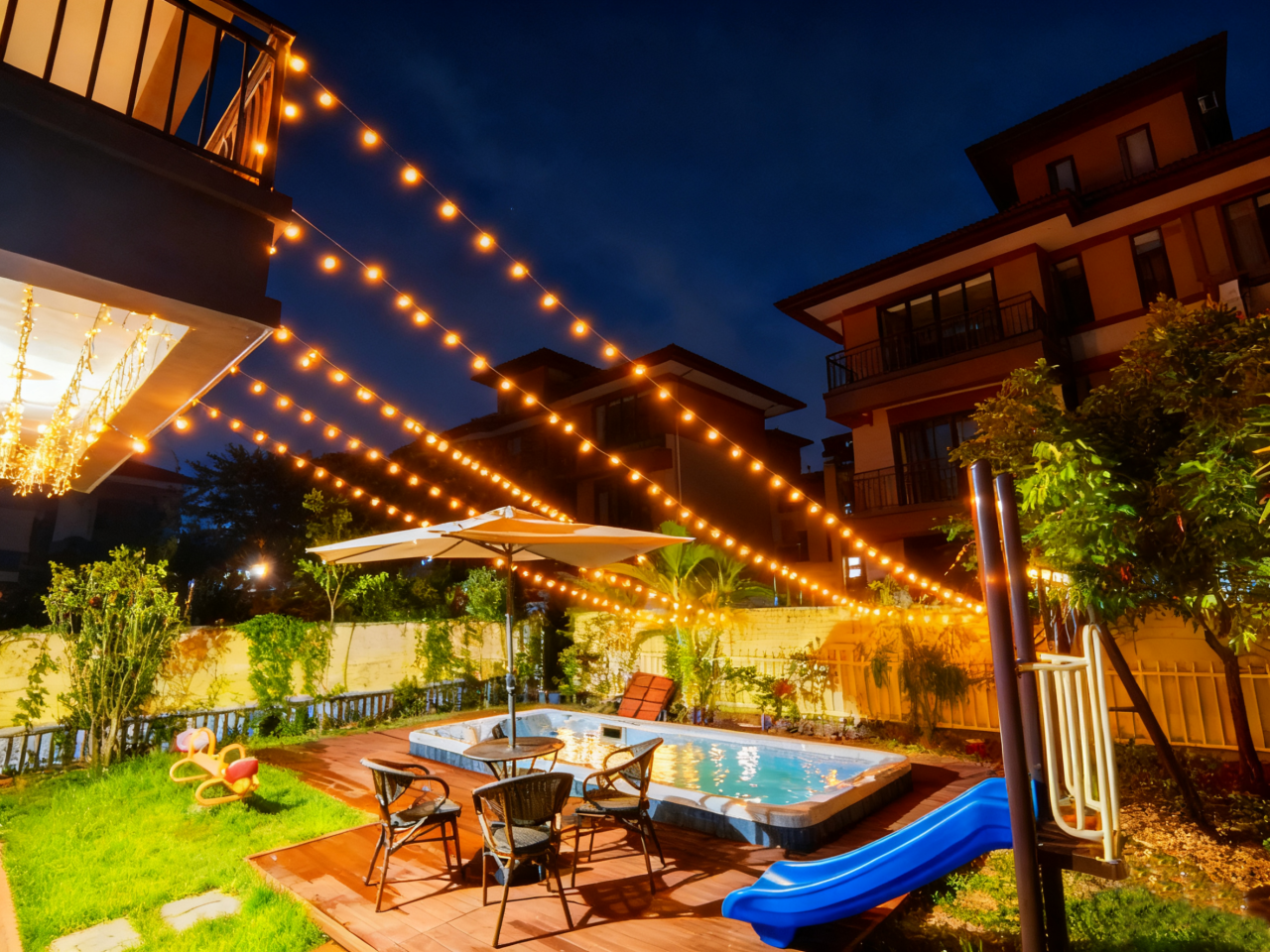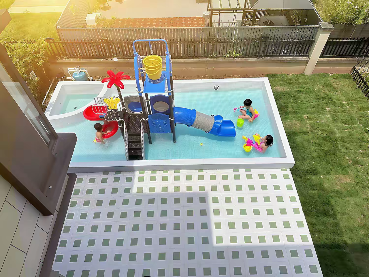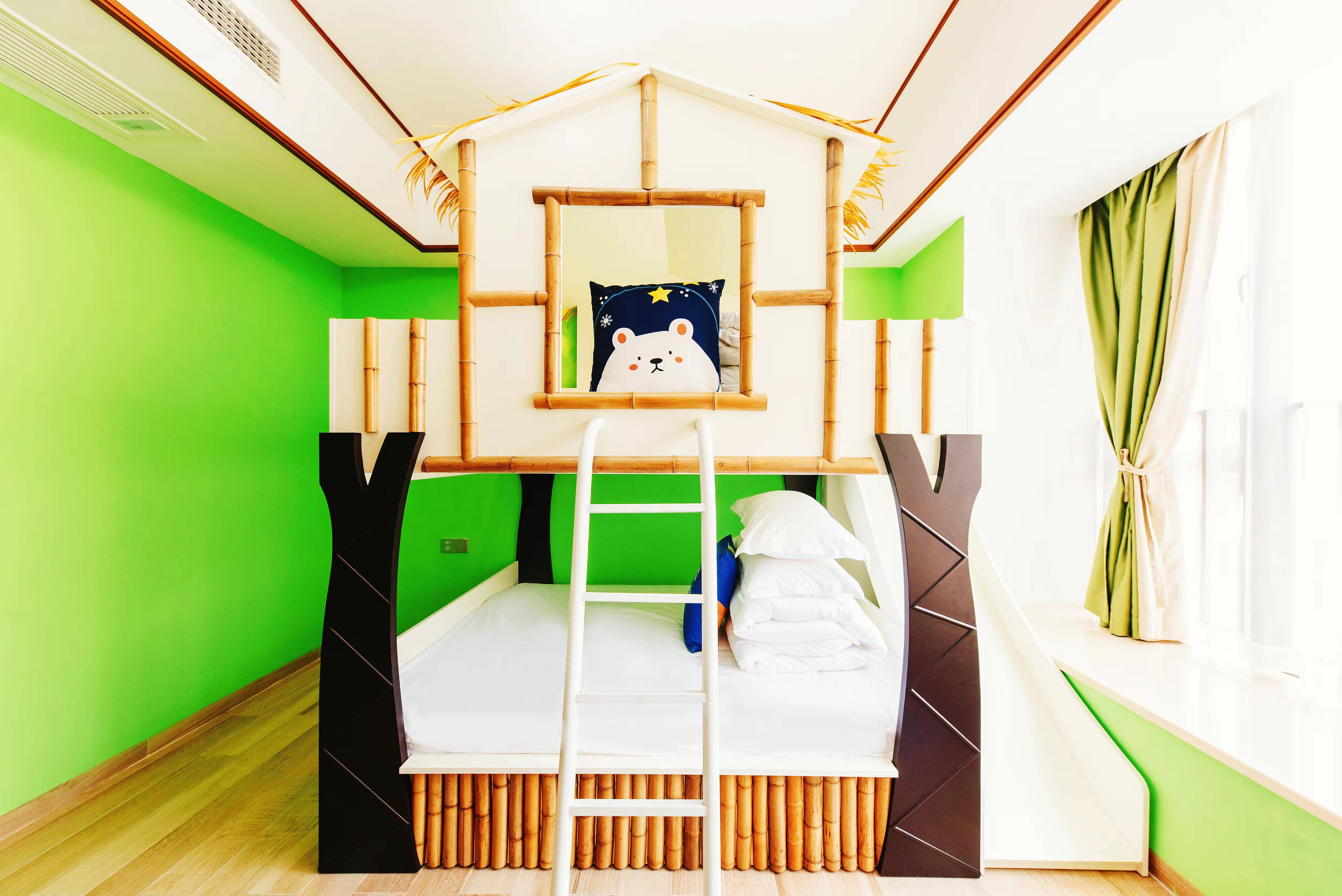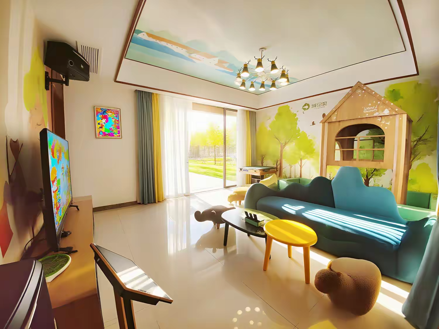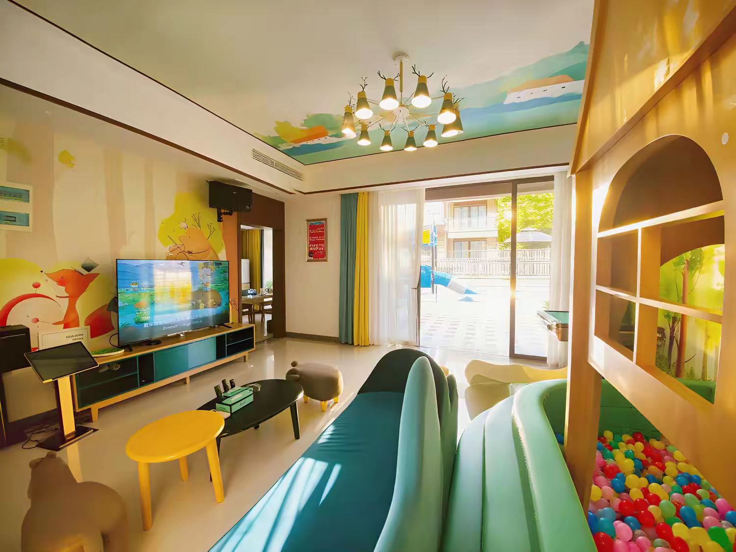 ● 升级"5房(4房+阁楼)9床KTV滑梯别墅:+100元/套(不含水乐园/浅水池/汤池;可使用户外组合滑梯)