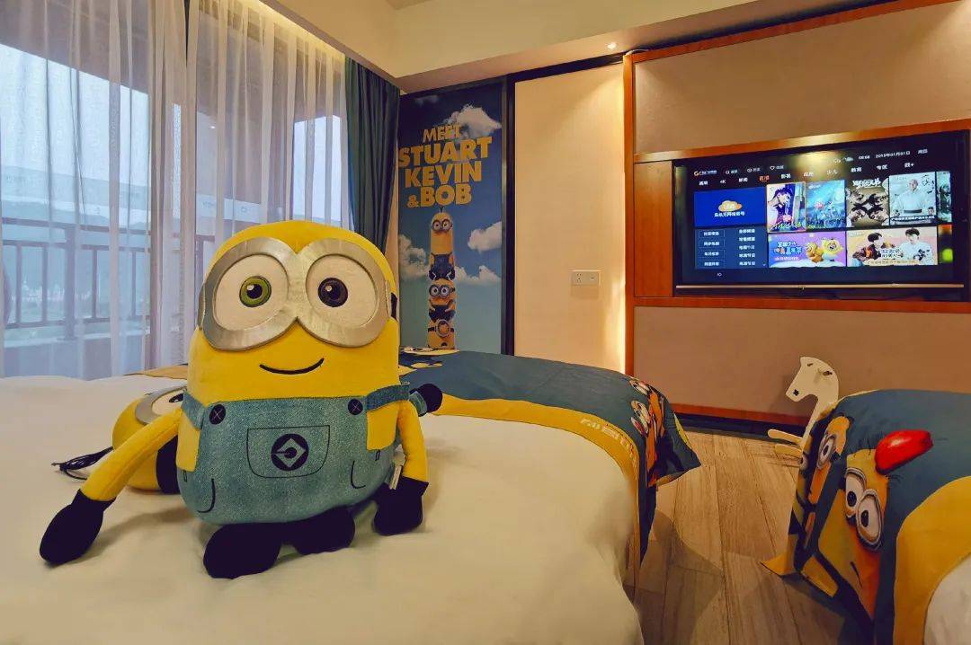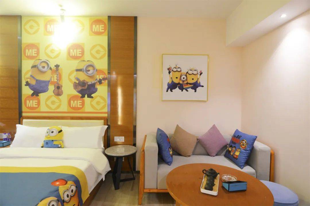 整个房间的装饰令人仿佛置身于小黄人的世界,萌爆人心的小黄人不只是出现在床上,还出现在你的梦里~