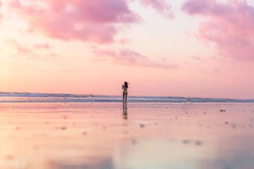 美女照镜沙滩