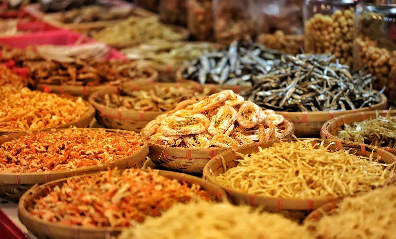 海鲜街上还有很多卖干货的摊档