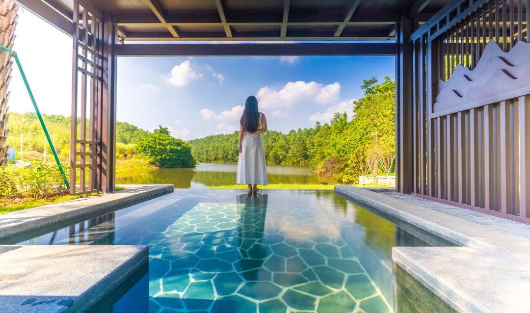【拈花谷泡池房】云浮新兴天露山¥599元起!叹私家温泉池,含双人自助早餐+双人环山小火车/玻璃空中漂流+山水泳池&温矿泉+篝火晚会