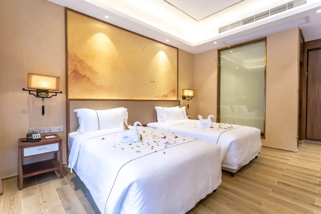 6、酒店配套设施如泳道、温泉中心、康体中心等如遇维护保养、恶劣天气、不可抗力因素或临时损坏无法马上维修好,部分设备设施或区域会暂停开放,具体开闭时间视酒店而定。如不影响入住,将不作退差处理亦不能作为退款赔偿理由!实际设备设施开放以酒店为准,酒店拥有最终解释权