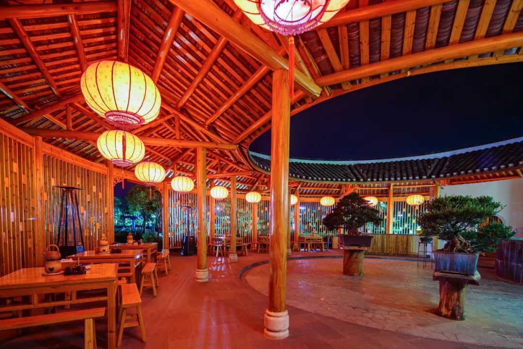 餐厅目前可同时容纳360人就餐。餐厅以客家农家菜为主打菜式,以健康、美味、休闲为宗旨,为游客提供具有当地特色和文化的菜品,全力满足各地不同游客的用餐需求。