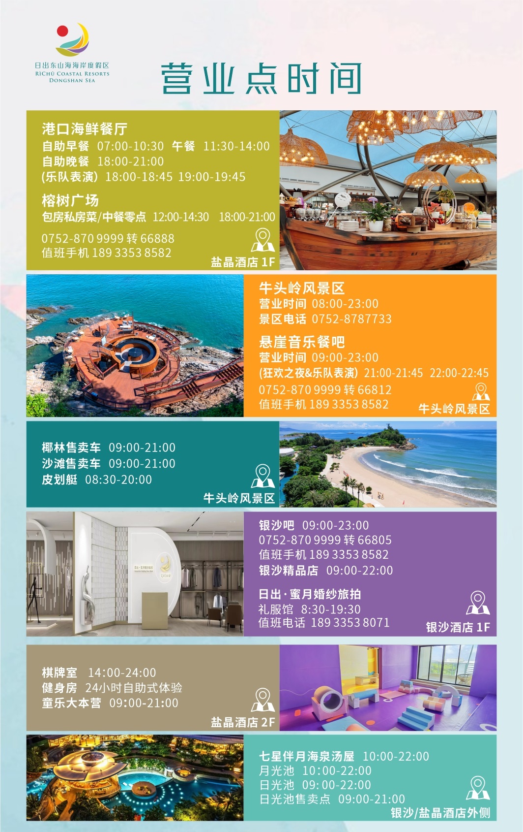 儿童政策:1.2m以下(不含)儿童早餐、晚餐、礁石酒吧门票、海泉汤屋免费,无需补票;1.2m(含)-