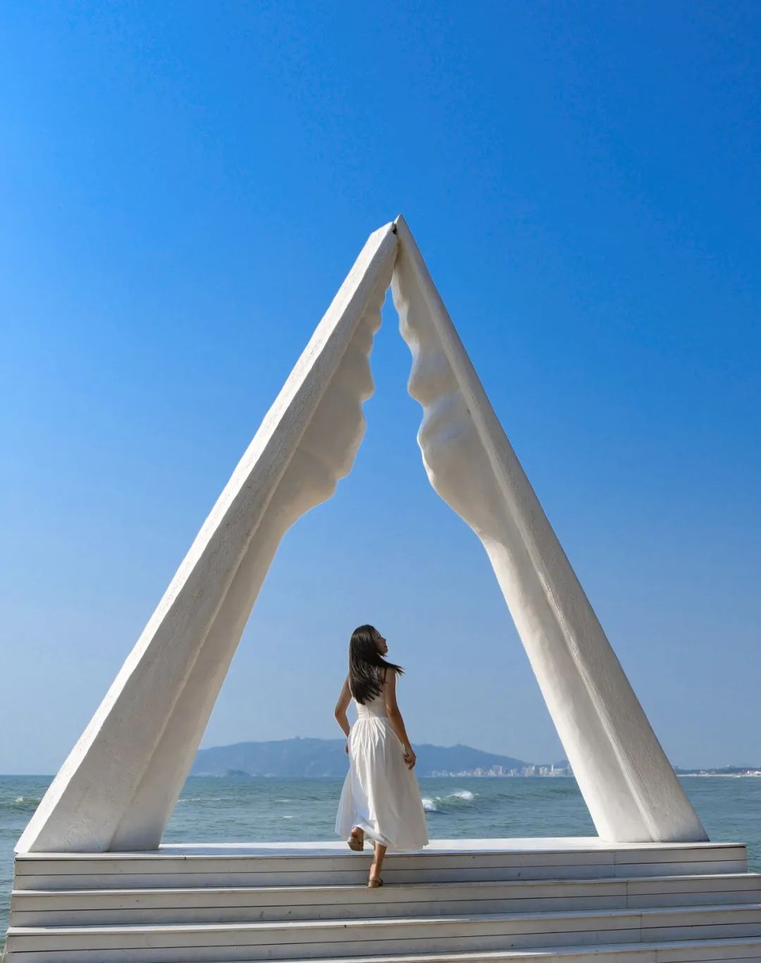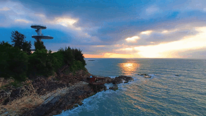 沙滩与礁石在、这里交相分布,气势磅礴的黑排礁、千奇百态的彩色礁,形成了丰富多彩、的海岸地理生态。爱的海岸、冥想海岸、狂欢海岸,与古城、盐田、禅寺、酒店,构成了 " 静动相宜 "、" 山海相拥 " 的全沉浸式感官体验。