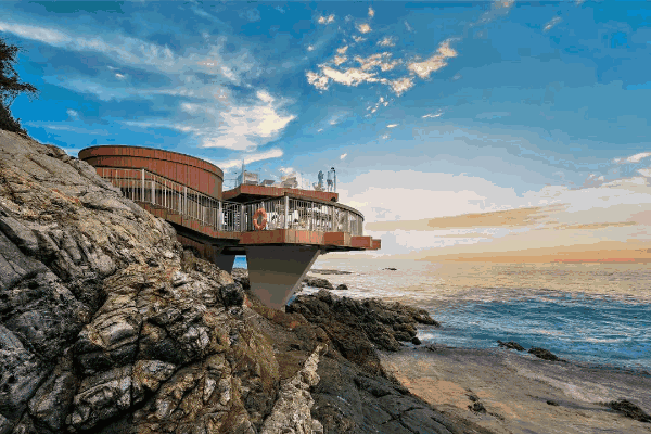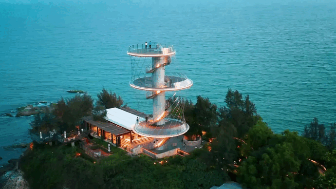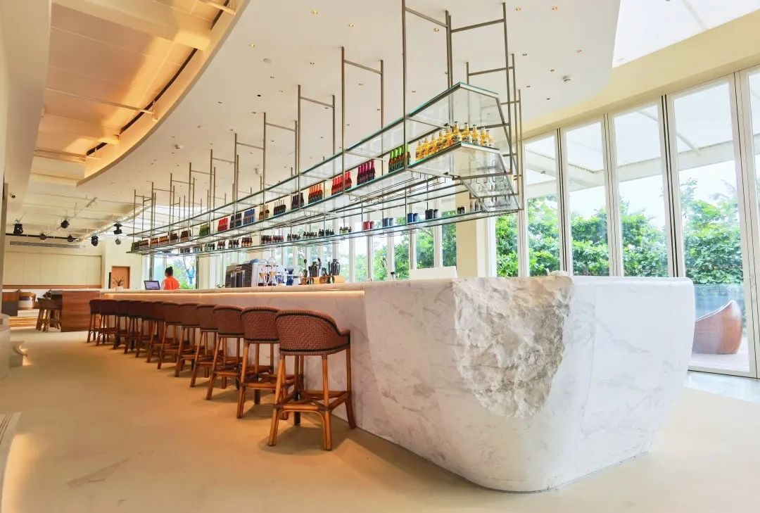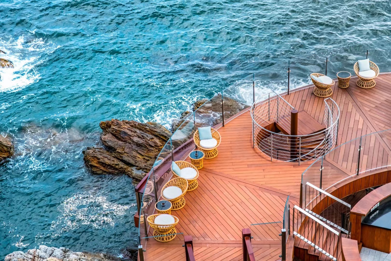 礁石酒吧和海浪吧,依礁而建的海浪吧是超 7000 万点击量的网红景点,只有一个指尖的距离可触碰到浪花。面向礁石湾的悬崖餐厅,是一家只接受定制的高端私人餐吧。