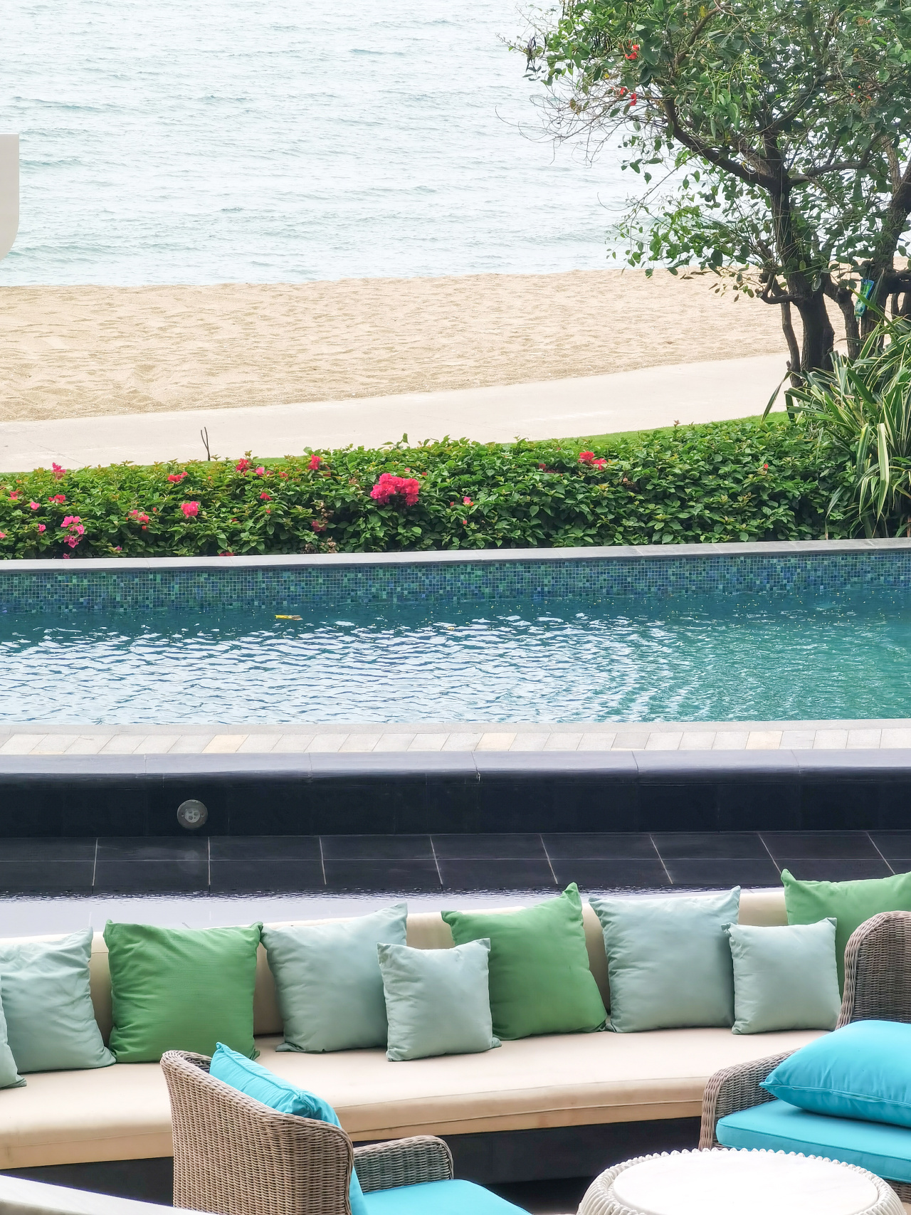穿过酒店大堂,寻着海浪的声音,拾级而下,到达【大堂吧】露台,可随处体验到大海的波澜及触动心灵的海浪声。