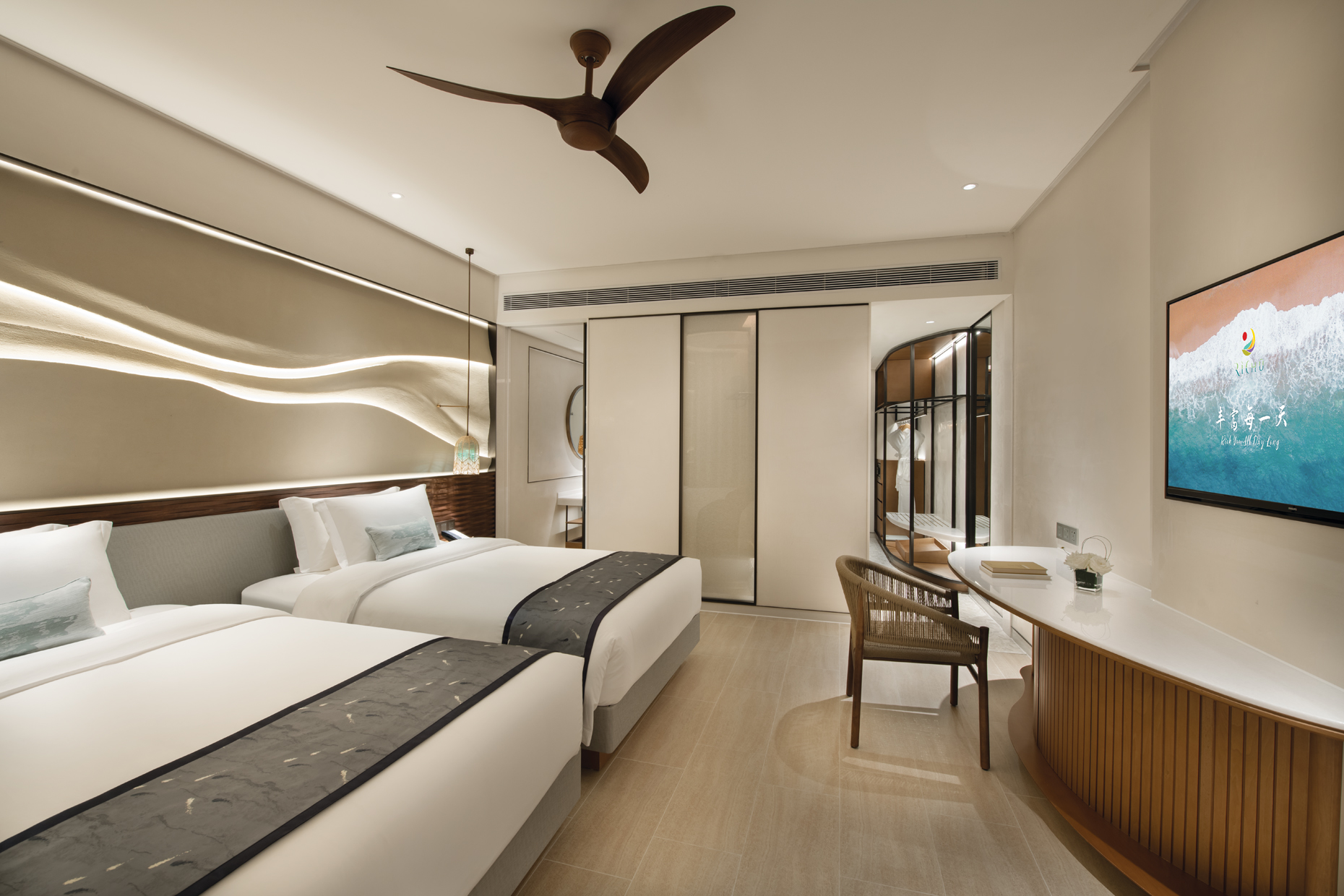 酒店拥有【日出银沙酒店】酒店所有客房均正面大海。设计大师受“地球洋流”的启发,首创「洄游式」空间动线,打破传统酒店的客房空间布局,让入住频添趣味。创新全隐式平开门,保留海景完整的蓝,沉浸式听海看海。