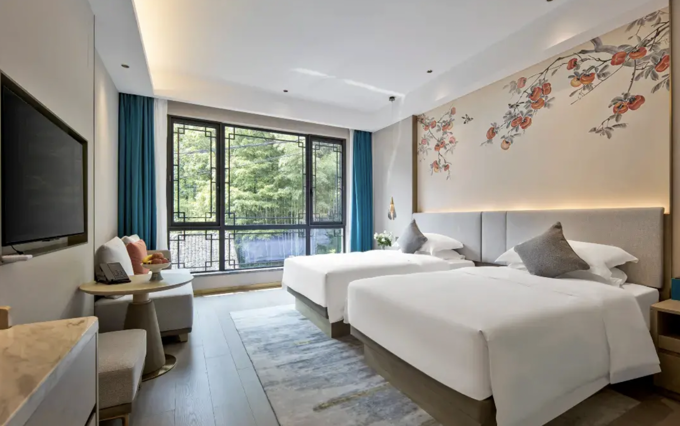 错峰特惠【西樵山希尔顿欢朋酒店】¥399住舒适/高级园景双床房1晚+欢朋西餐厅自助早餐+听音湖氢湾游船票两张!享二楼健身房、九楼儿童乐园!近西樵山、广东千古情、盈香生态园等[高级园景双床房含早含游船]