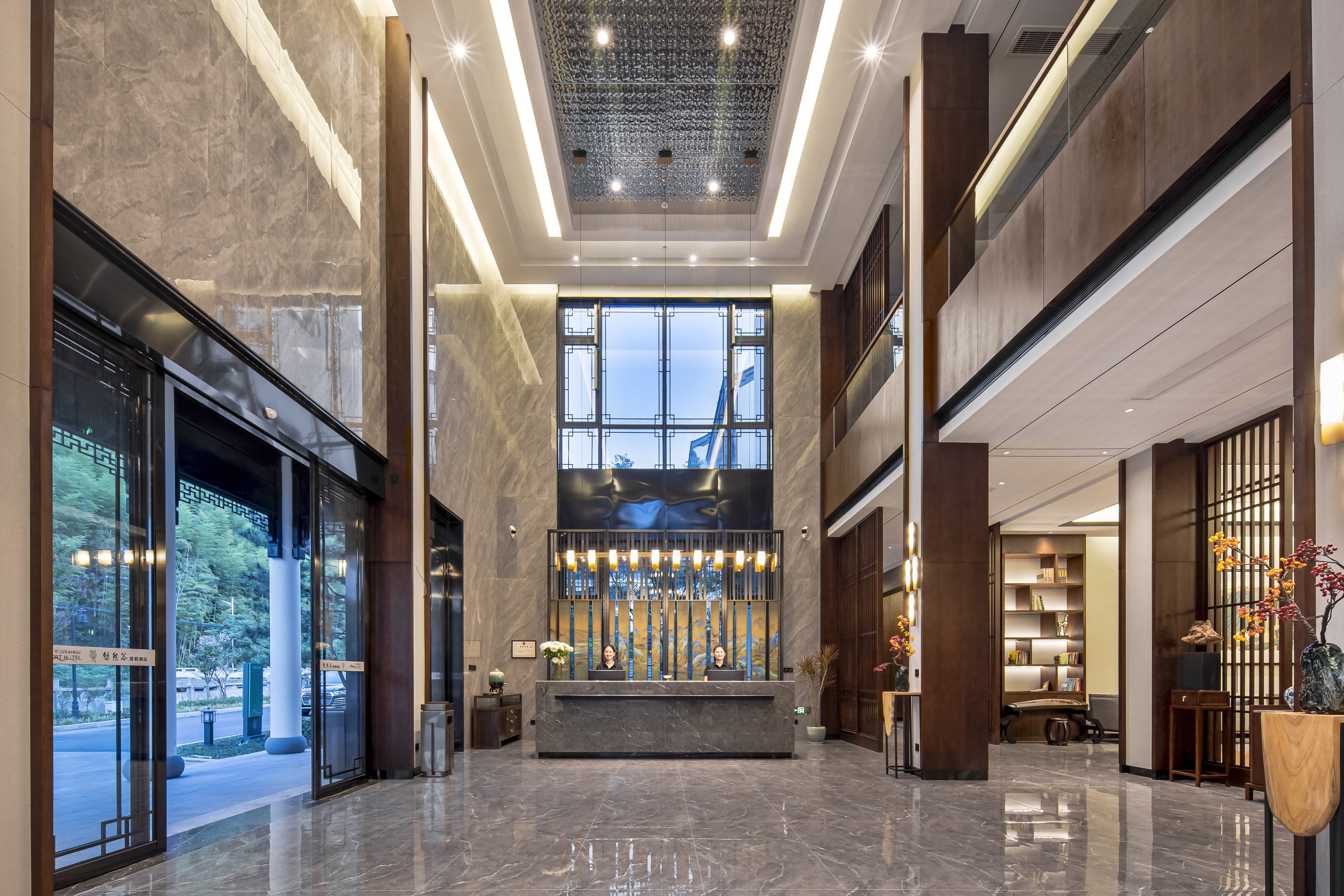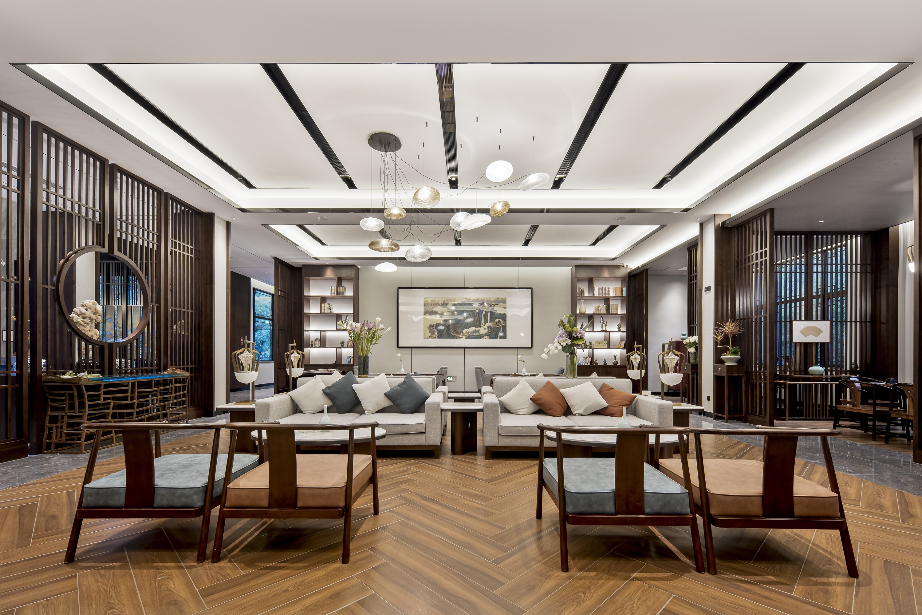 酒店建筑外观有青瓦白墙中的江南优雅,恬静而自然。