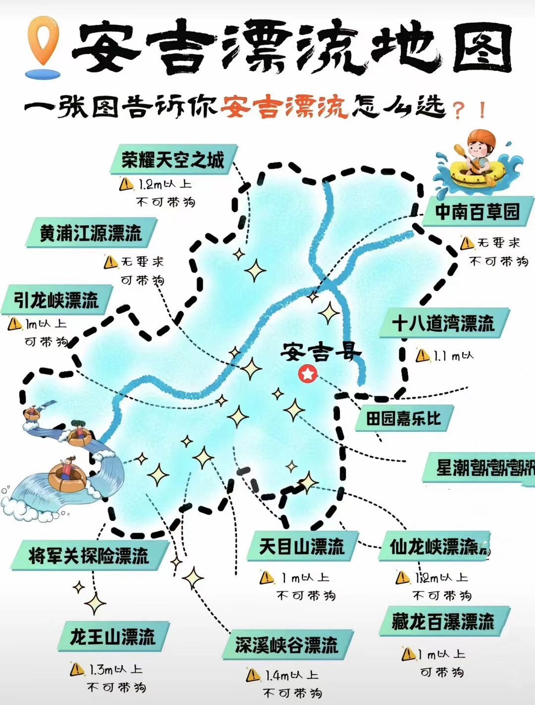天目山漂流全长3公里,漂流完全程需1小时20分钟。天目山漂流回环曲折,或急或缓,抚清清绿水,揽山川佳境,物我共忘,心机陶然。伐中可随波逐流,喁喁长谈,叙青春委婉真情,也可拍浪嘻戏,寻少年之笑语欢歌。