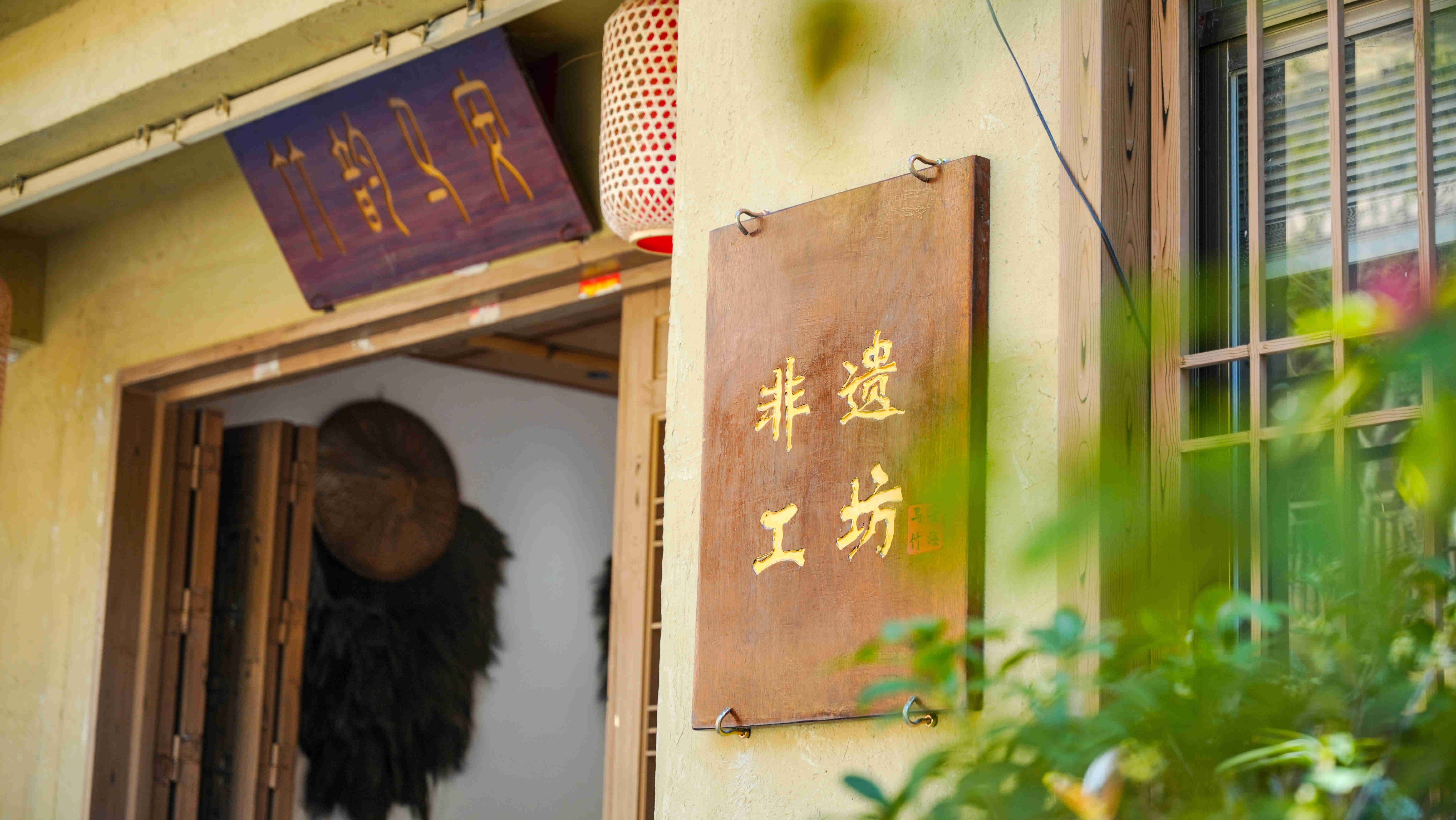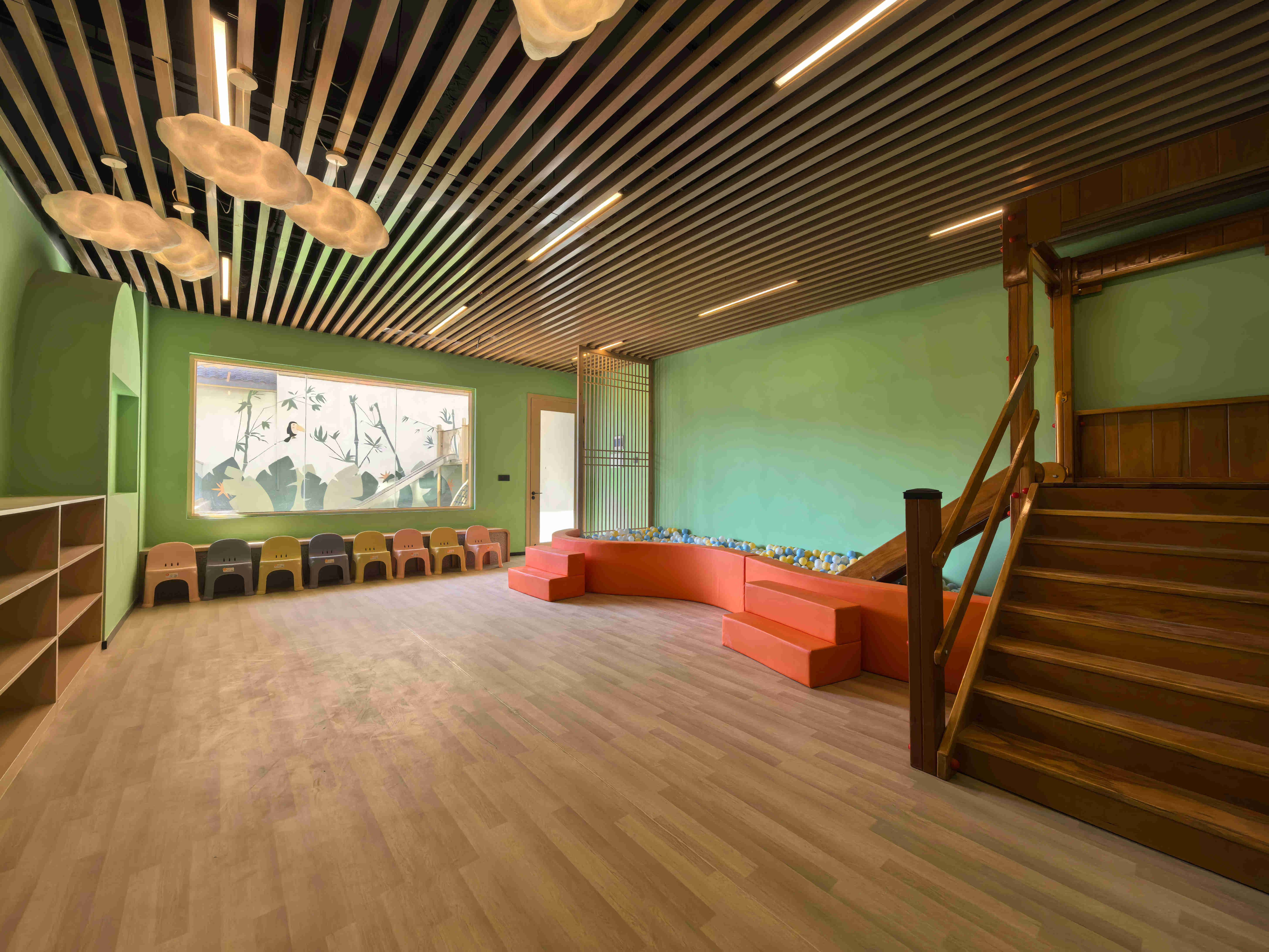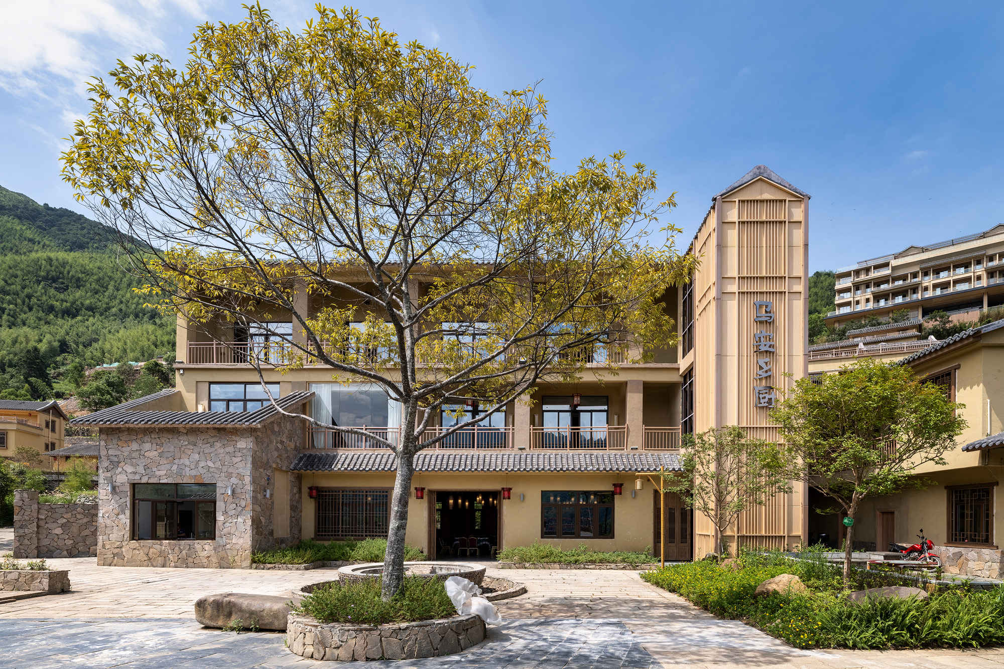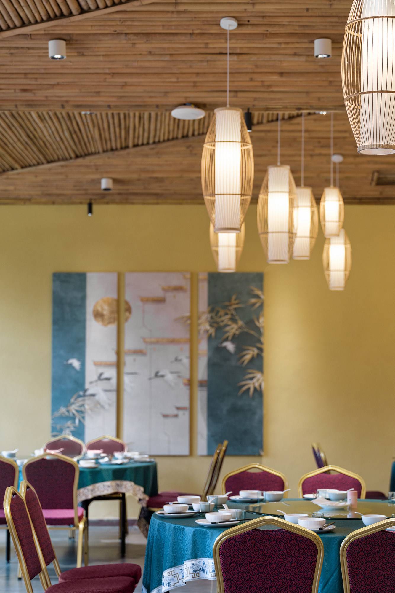 中央悬吊着由信宜本地竹艺师编织的"流云"装置艺术。