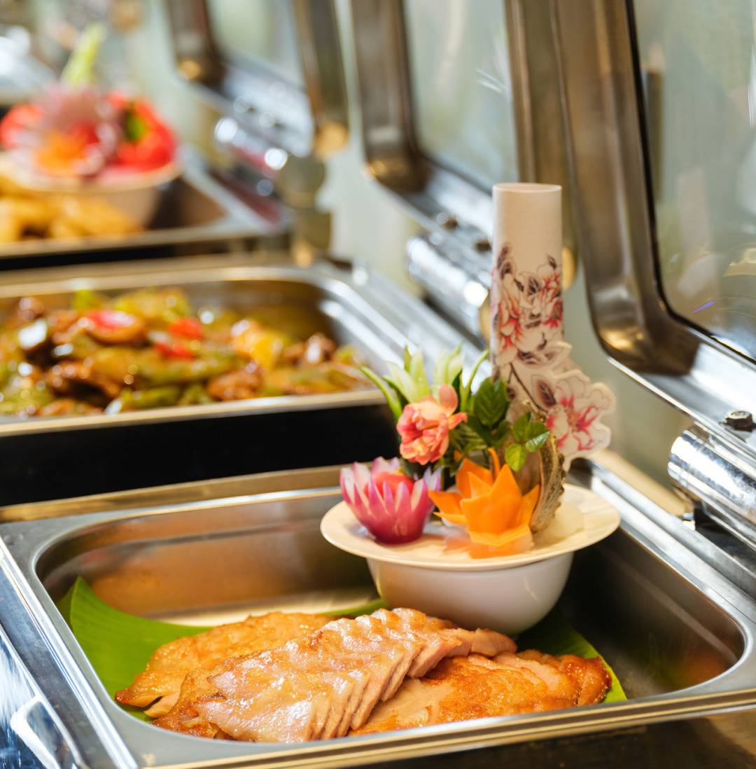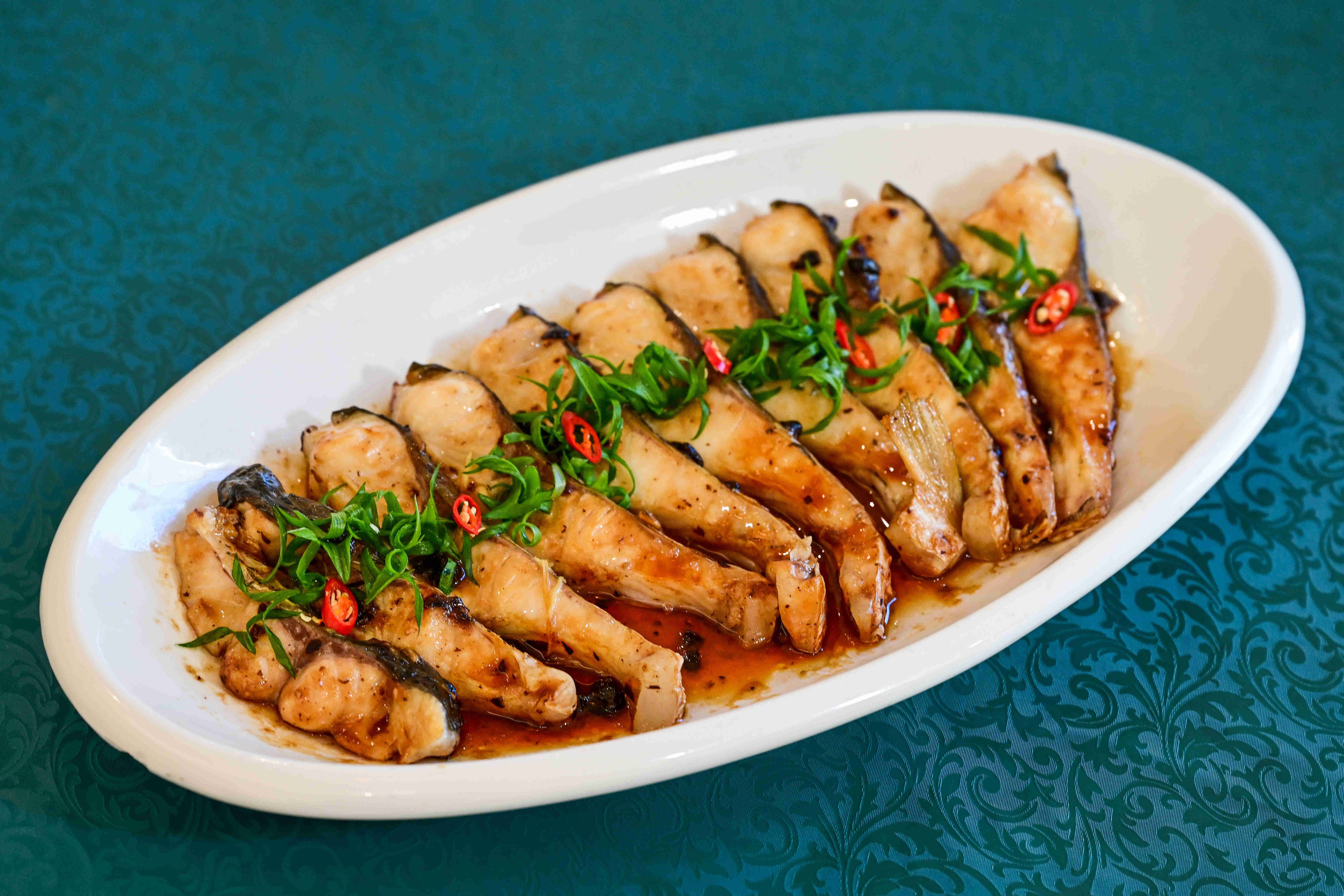 晚餐时段最受欢迎的现切烤肉台提供信宜本地黄牛肉,肉质紧实带淡淡奶香,