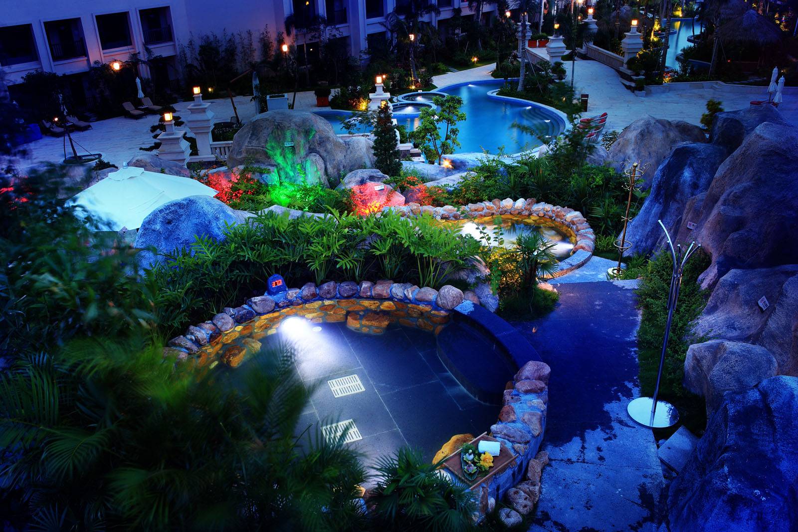 嘉华山谷温泉含氡、氟等各种微量元素,26个泡池,4个泉区