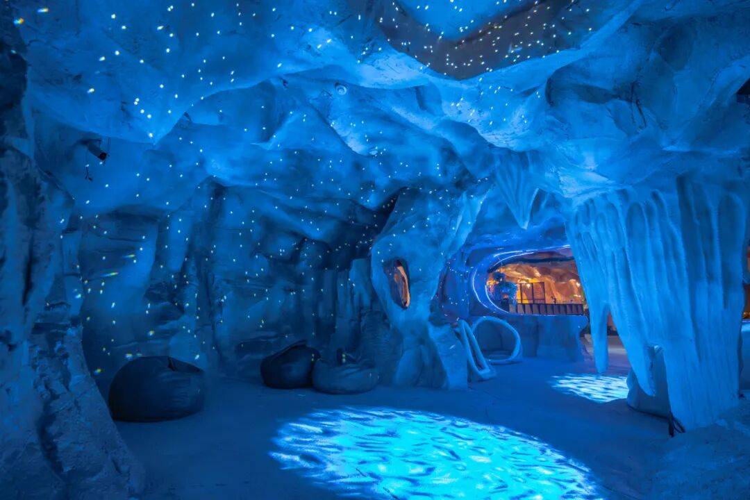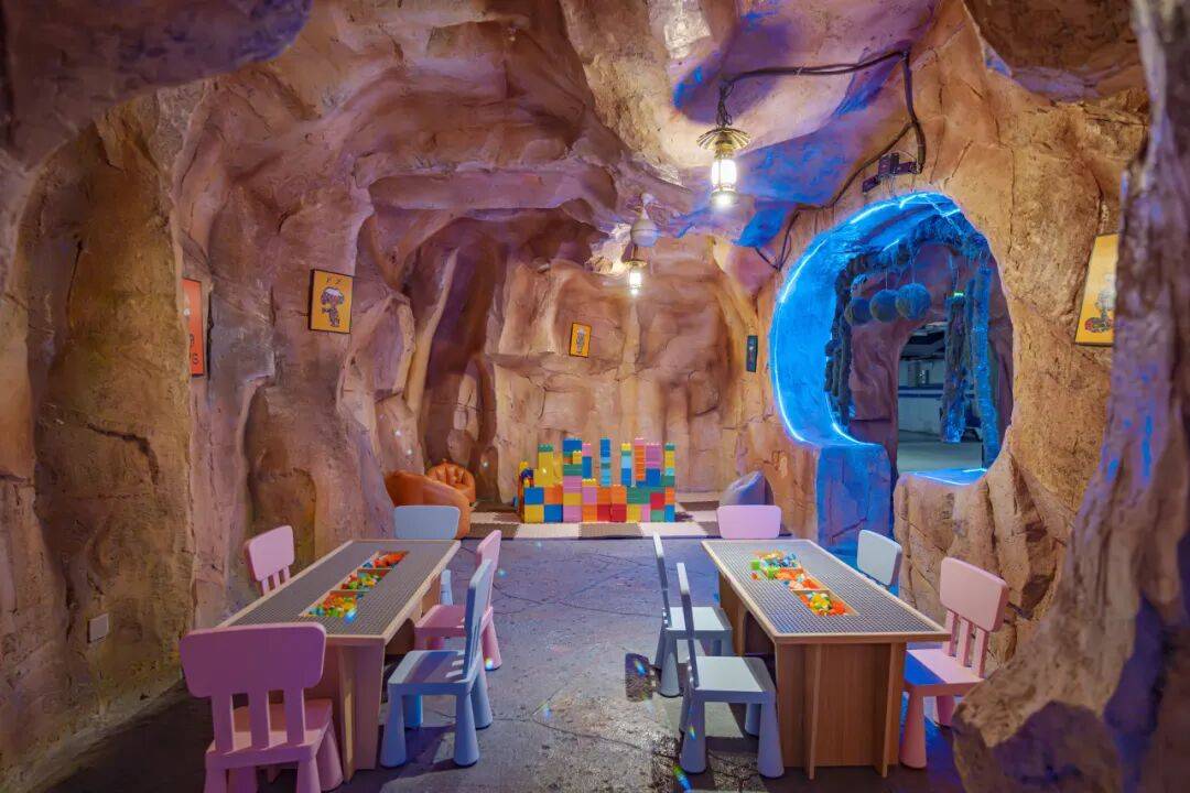 泡累了也有好去处:星空休息区能躺着吃小食、喝热饮,抬头就是模拟星空;PS5 游戏区适合和朋友组队竞技,乐高积木、彩虹沙池是亲子家庭的快乐天地,还有全息互动光影通道,走进去像穿梭在奇幻世界,玩上一整天都不重样。