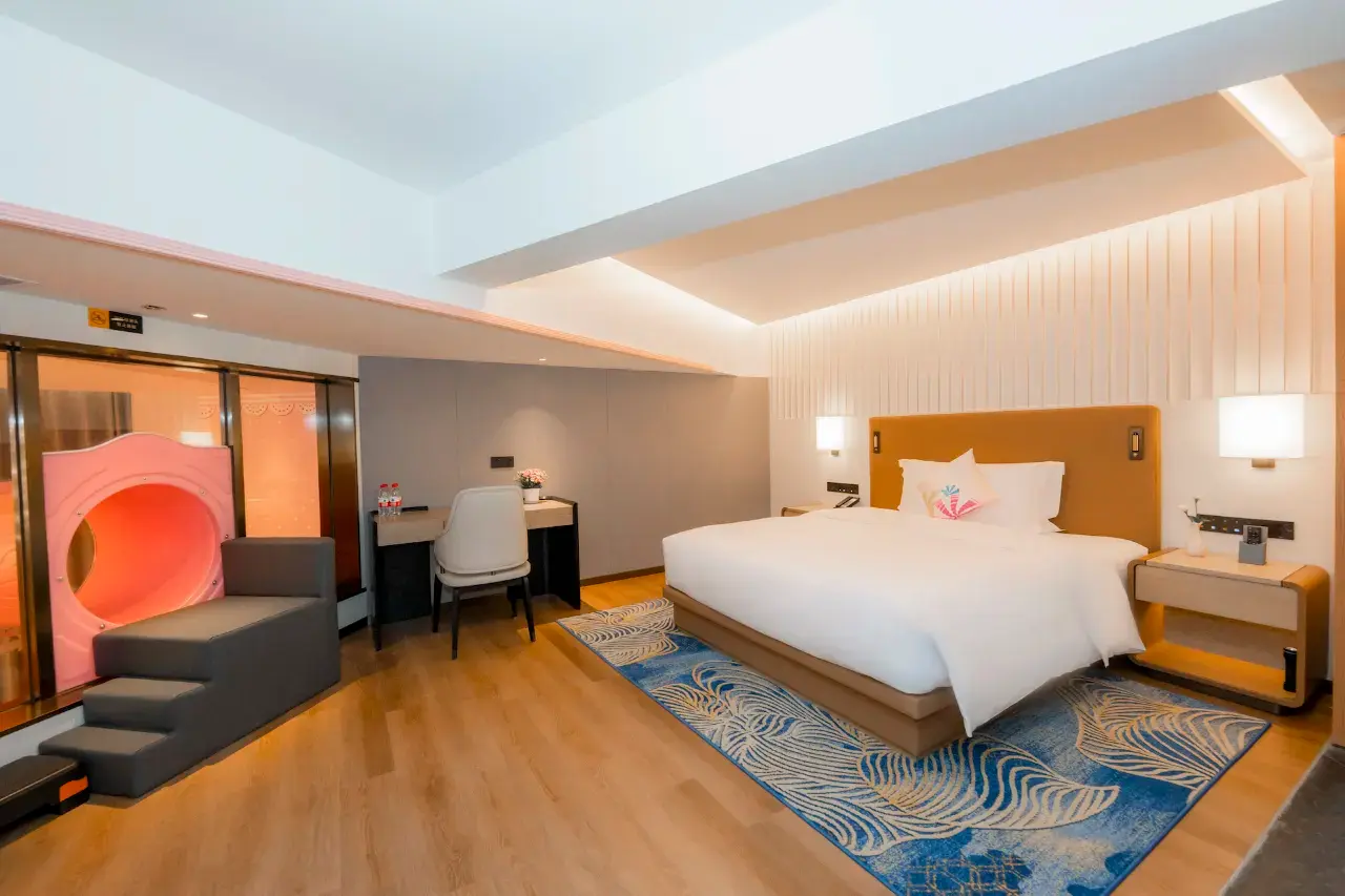 酒店的重头戏就是就是3000㎡的室内游乐园了,同时也是网红点之一。在这里下至幼儿,上至家长,都能在这里找寻到快乐!