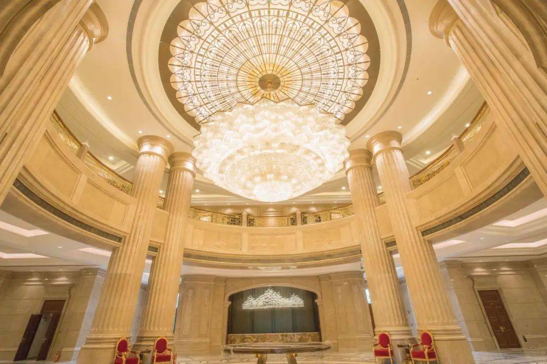 诺大的水晶灯,高大的罗马柱,光亮的大理石地板