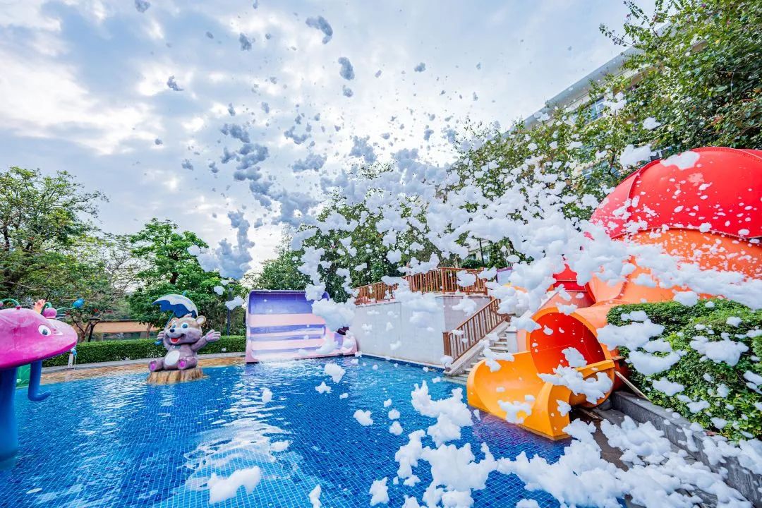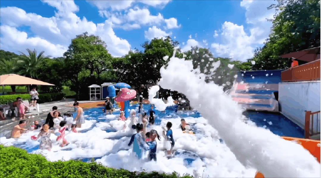 | 精灵水上欢乐天地,池内都是温泉水,天凉一点也能畅快玩水哦~