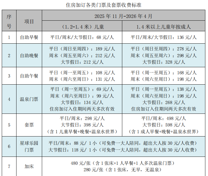 礼包一,入住以上客房套餐,+100元/晚,增加1人自助早餐+1人两天多次温泉水世界。