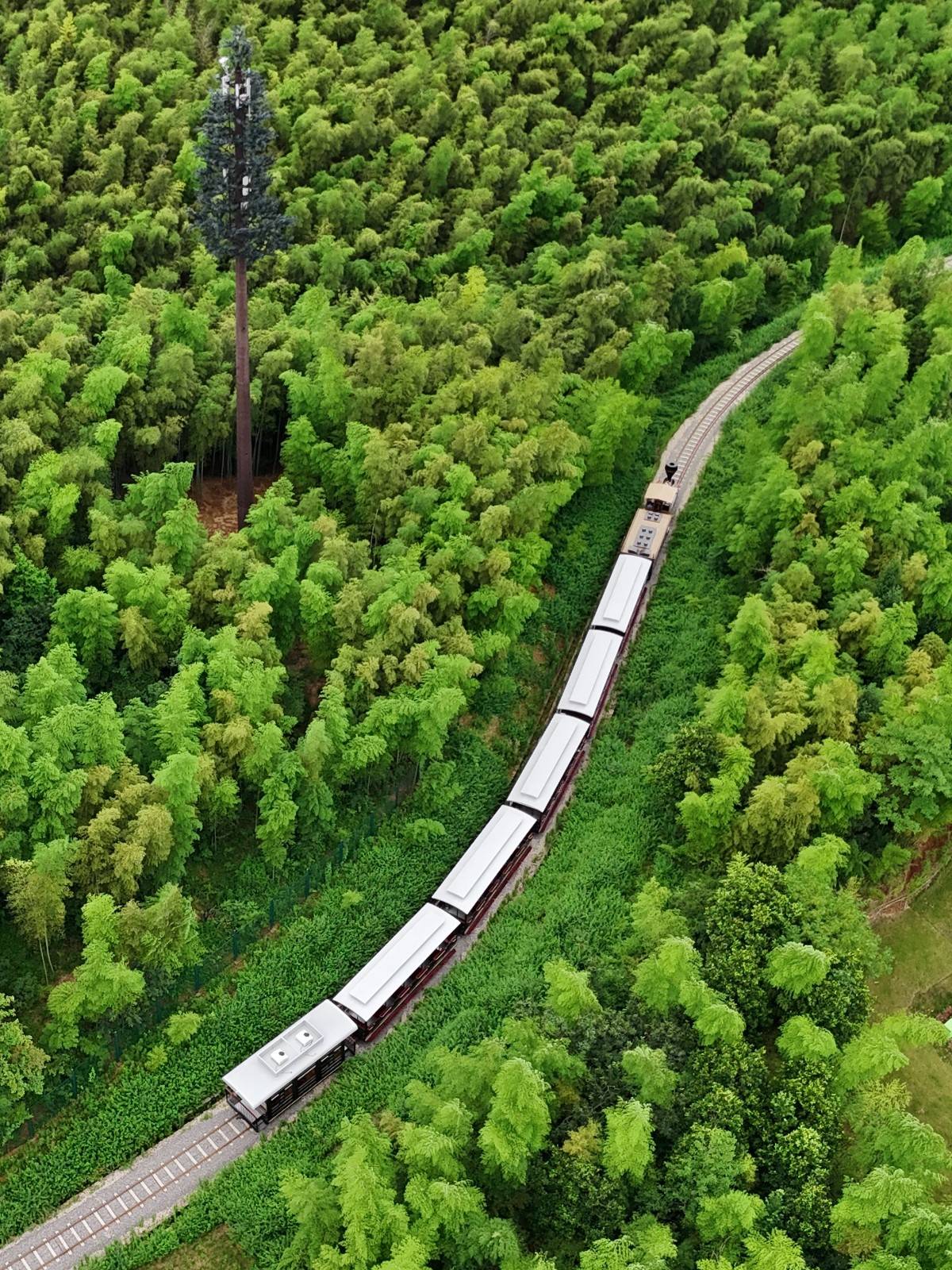 云上的小火车是景区一个极具特色的体验项目,整个火车轨道长约6.2公里,顺时针环绕小镇运行,全程约50分钟,一路穿越高架、隧道、湖泊、竹林、茶田等不同场景,“沉浸式”游览整个小镇。