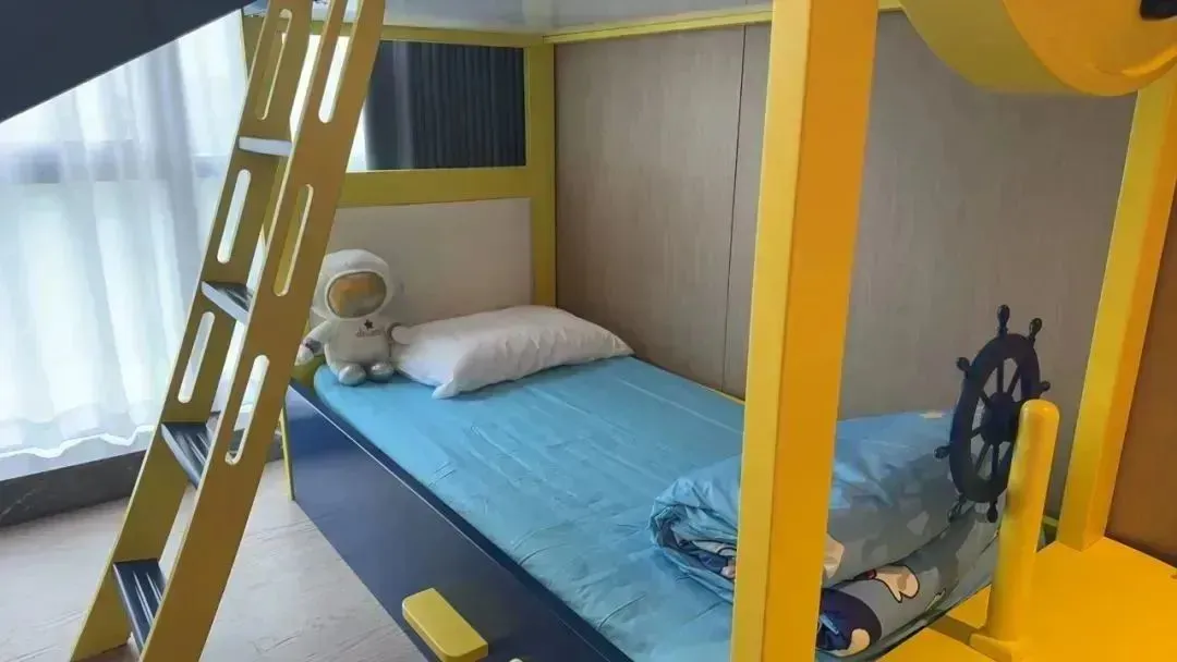 飞船亲子双床房【2张1.35米床+一个滑梯上下铺床】