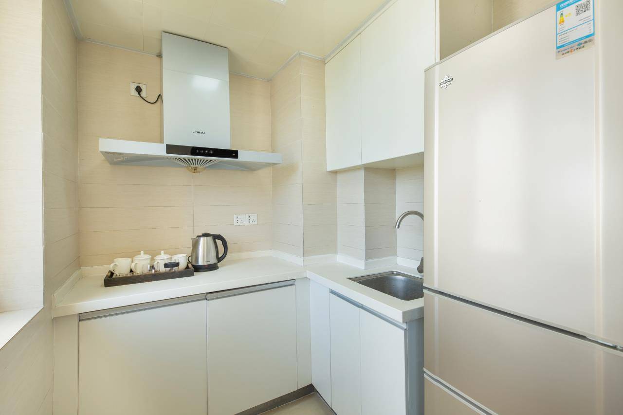 3、房间内可以做饭,但没有厨具提供,厨房有抽油烟机和洗手台,无燃气,如果需要做饭,可以自行携带电磁炉和蒸锅等厨具