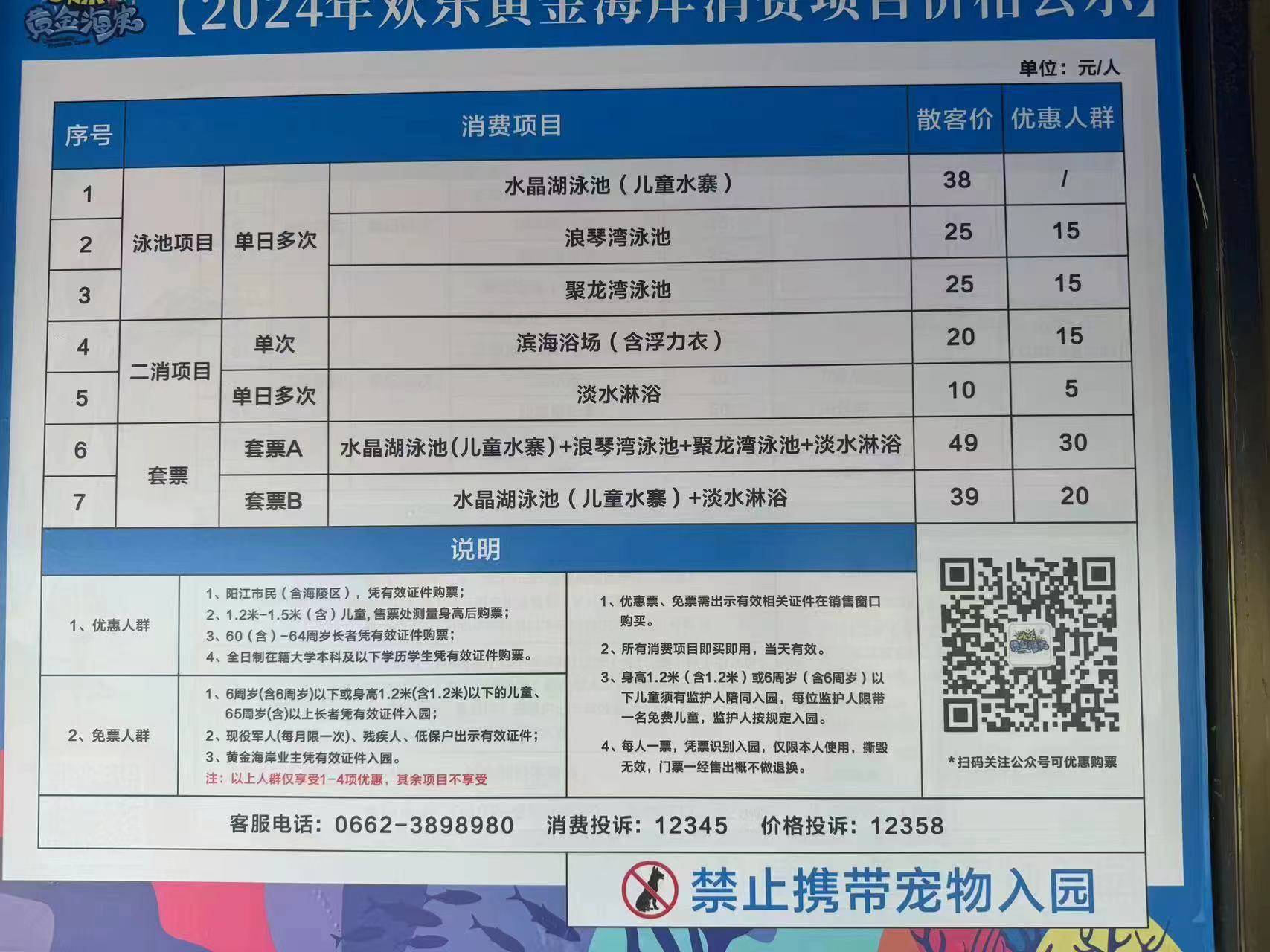 增订敏捷·欢乐黄金海岸游玩项目收费标准:(仅供参考,目前暂时没开放,如有变动,以景区公布为准)