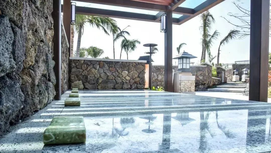 漫步在海洋热疗区的庭院中,仿佛走进了艺术花园。绿植、海风、阳光,温润的富氧空气,即便不做水疗,也让人愿意久。