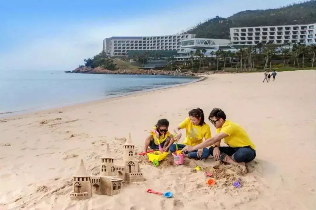 酒店前素有“钻石沙滩”美誉的南沙湾沙滩也是孩子们喜爱的玩乐天堂!在沙滩上玩沙、建城堡、捡贝壳,也相当有趣了~,海水湛蓝,准阔沙软,尽享海岛乐趣,同样也是举办团建活动、提升团队精神的理想场地。